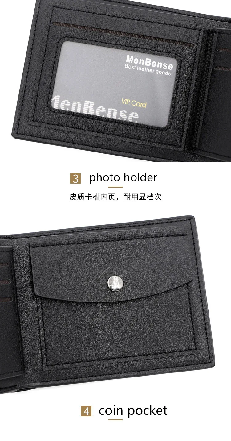 Slim Herren Geldbörse – Kurzform PU Leder Wallet mit Karten-, Foto- & Münzfach