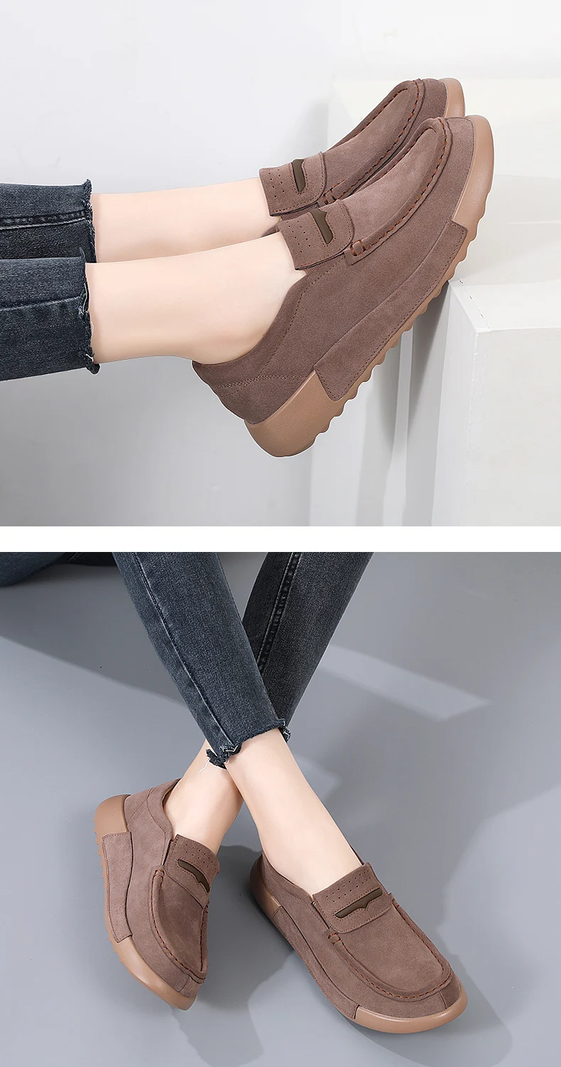 TIMETANG Damen Loafers Flats – Handgefertigte Mokassins aus echtem Leder, Slip-On, runde Zehen, Plattform Schuhe für Frühling & Herbst