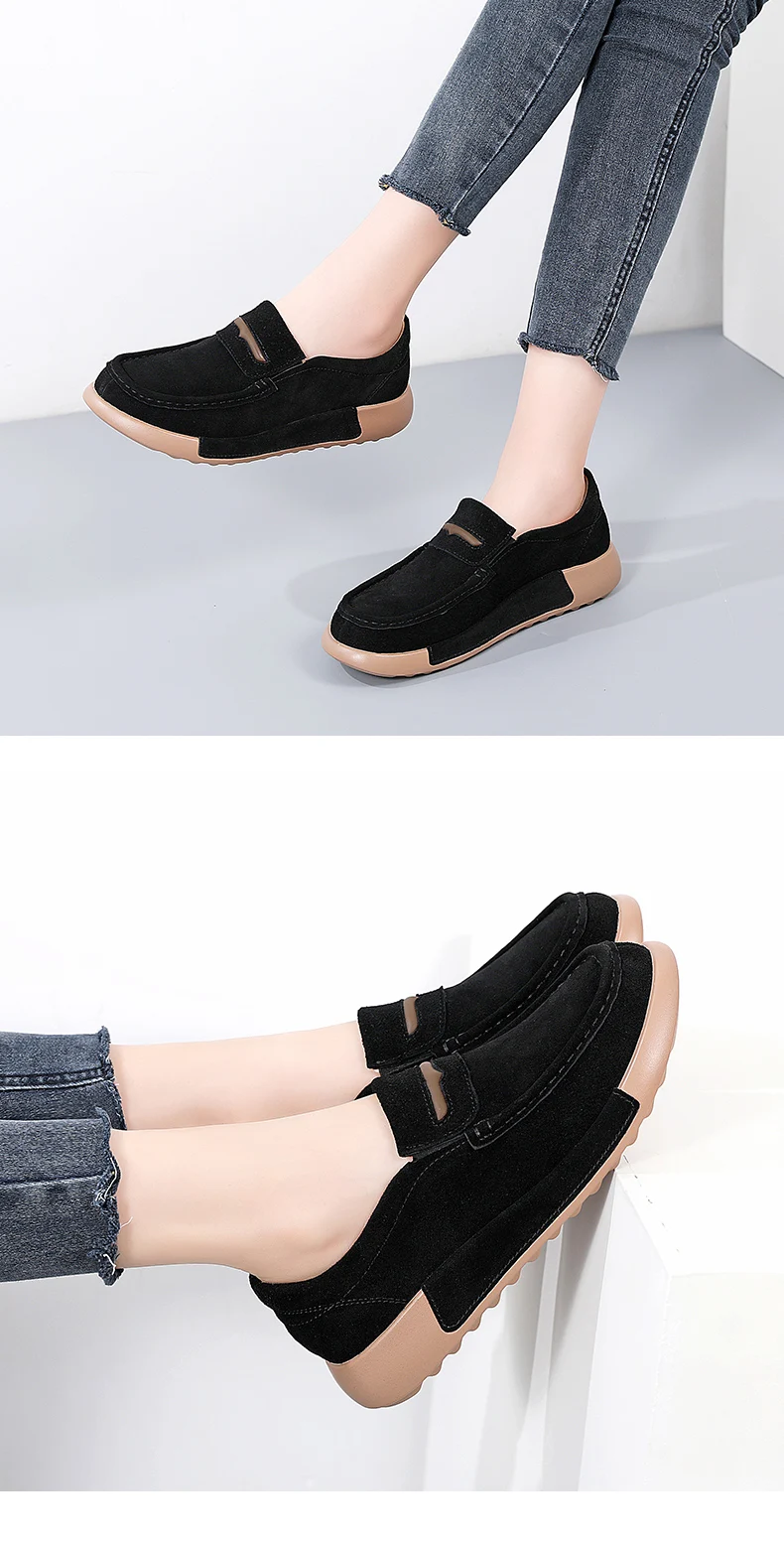 Die runde Zehenform sorgt für ein bequemes Laufgefühl, während die leichte Plattform-Sohle einen modernen Look and zusätzliche Stabilität bietet. Die schlichte, elegante Gestaltung macht die Schuhe vielseitig kombinierbar – ideal für Frühling und Herbst, Büro, Alltag oder Freizeit.