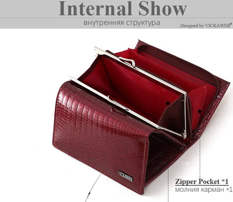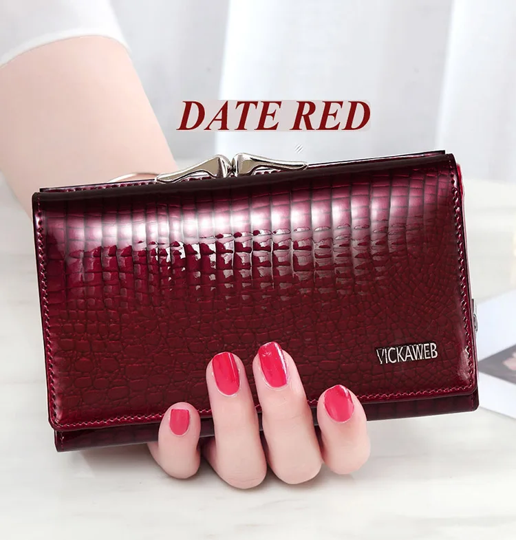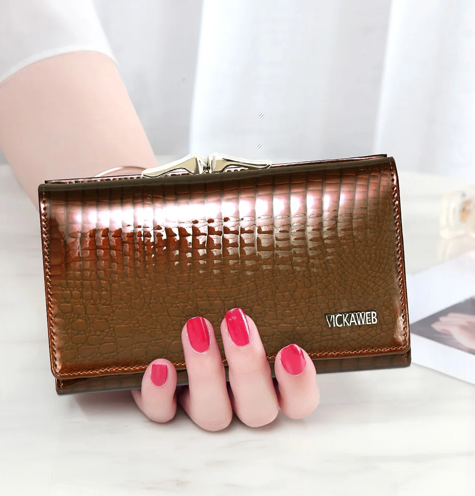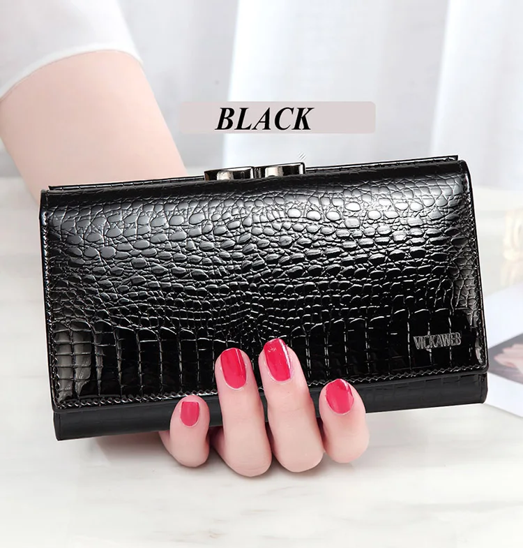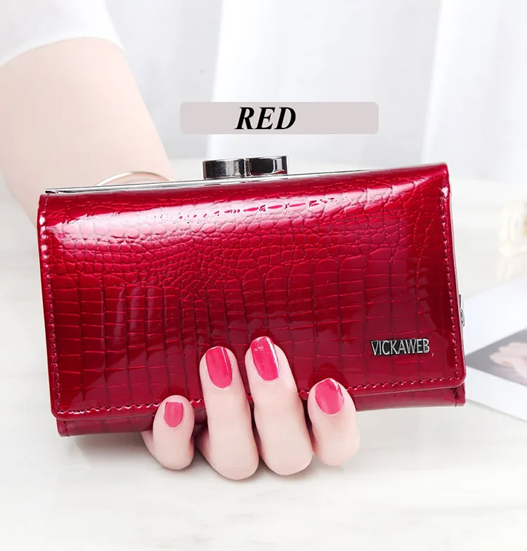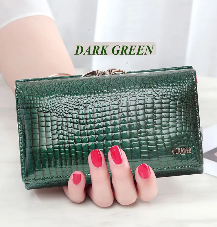VICKAWEB Damen Geldbörse aus echtem Leder – Kleine Fashion Wallet mit Alligator-Prägung, Reißverschluss & Druckknopf