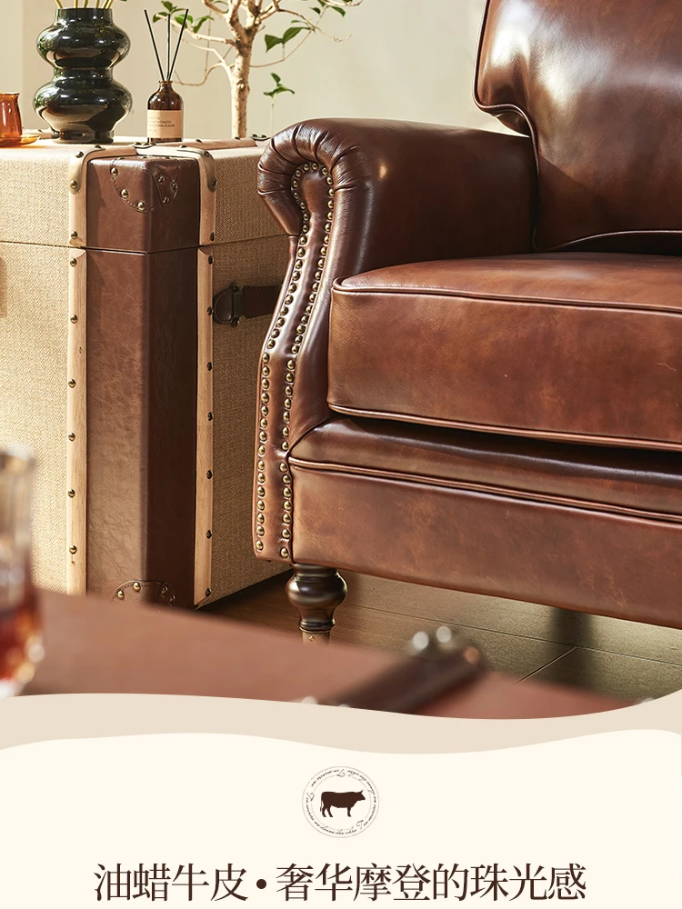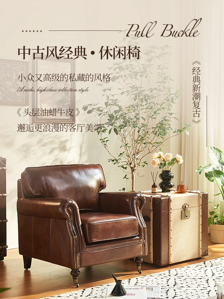 Silla de cuero vintage en estilo francés-americano – Antiker Relaxsessel aus Oil-Wax Leder, Retro Tiger Chair für Wohnzimmer & Lounge