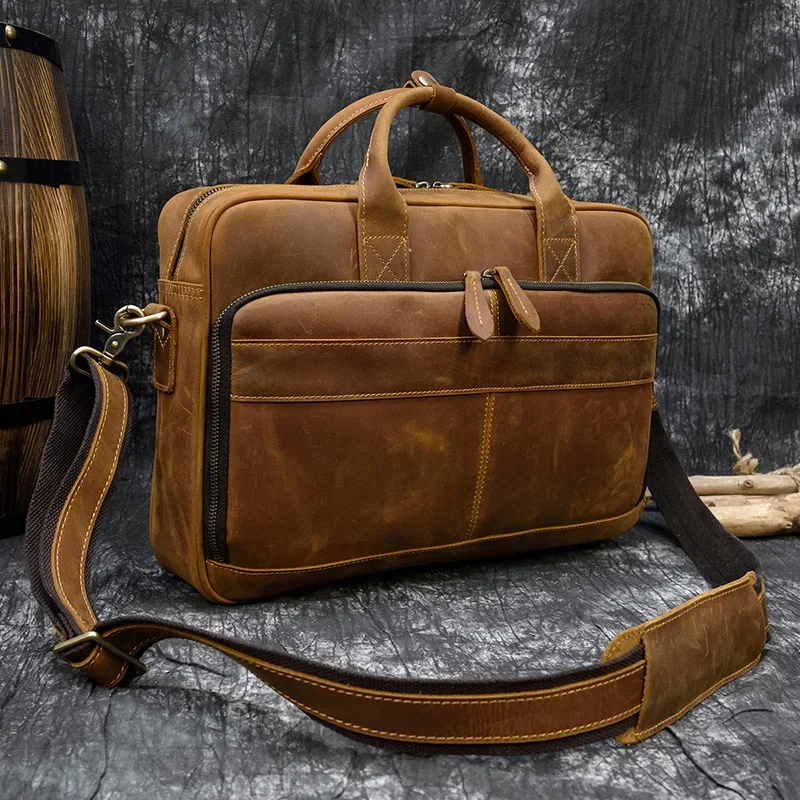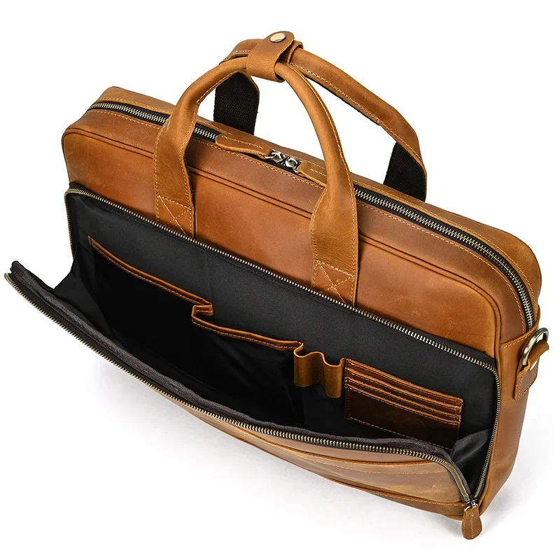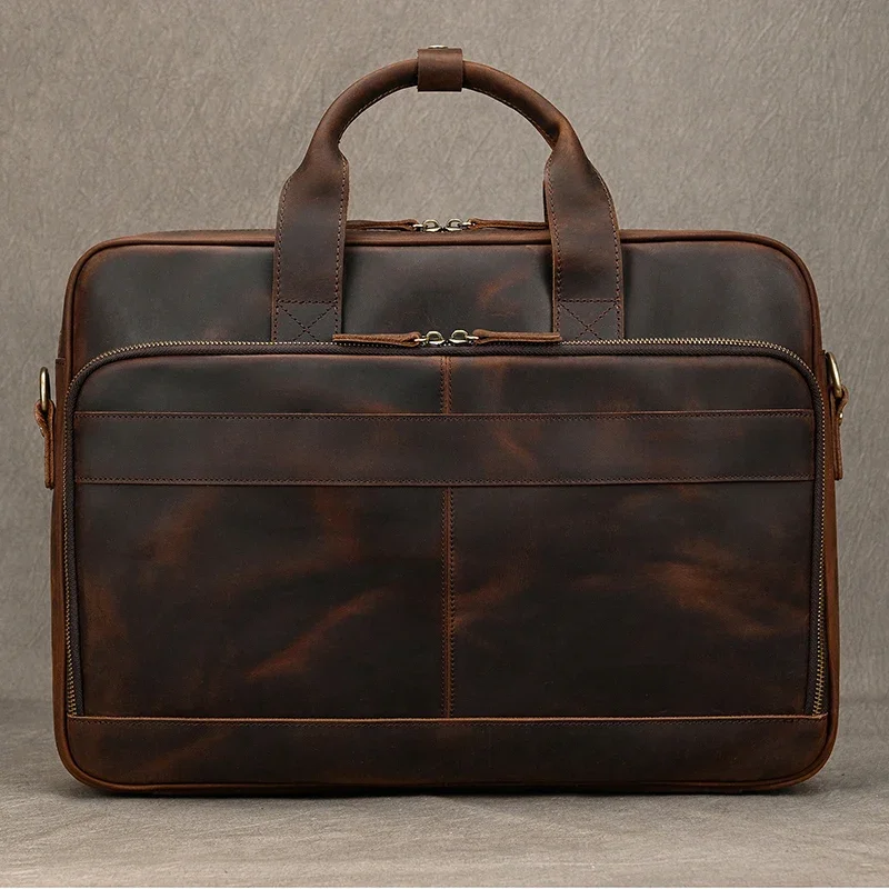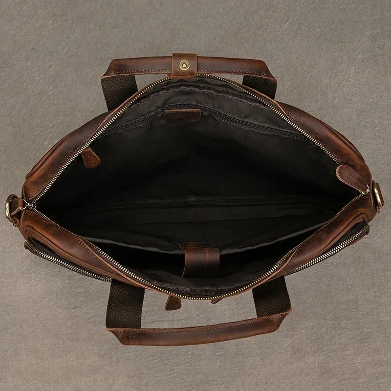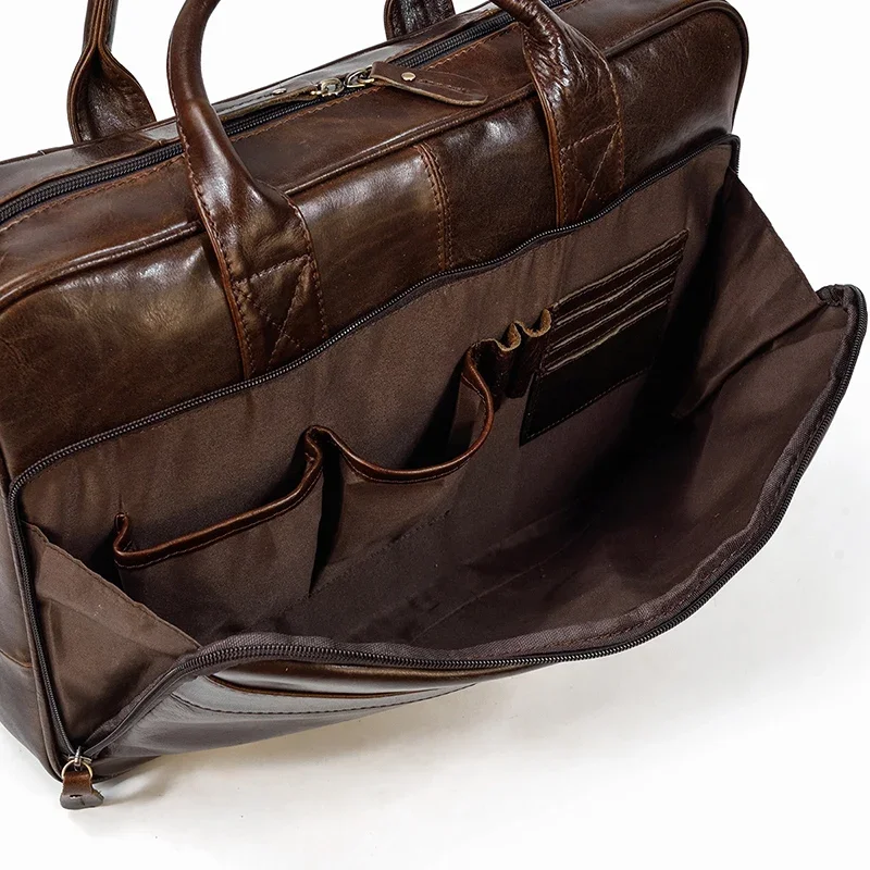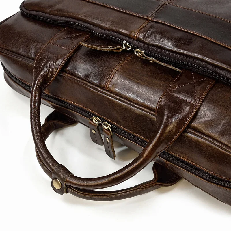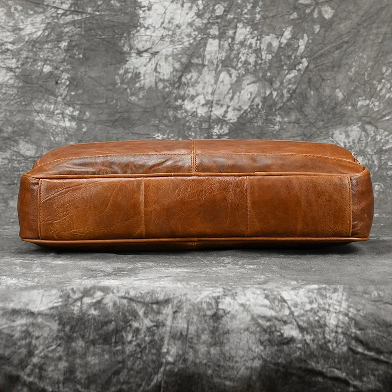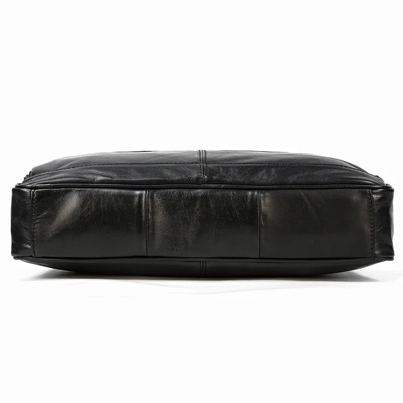 Das verwendete Genuine Cow Leather zeichnet sich durch besondere Geschmeidigkeit und natürliche Struktur aus. Es fühlt sich angenehm weich an, bleibt dabei formtabil und strapazierfähig. Die schlichte, einfarbige Oberfläche verleiht der Aktentasche einen dezenten Luxus-Charakter, der perfekt zu Business-Outfits und gepflegtem Alltagsstil passt.