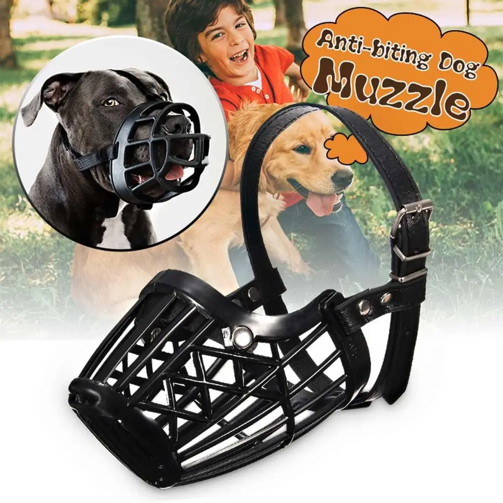 Weicher Hunde Maulkorb aus Kunststoff & Leder – Verstellbarer Anti-Beiß Korbmaulkorb für kleine, mittelgroße & große Hunde