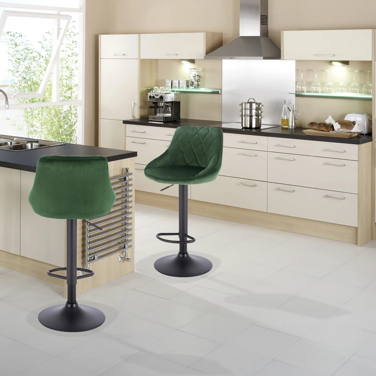 WOLTU Barhocker 2er Set aus PU-Leder oder Samt – Höhenverstellbare & drehbare Tresenhocker mit Rückenlehne, Fußstütze & Chromstahl-Gestell