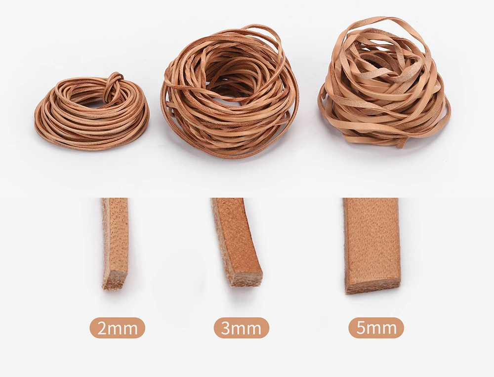 WUTA Flache Echtleder Kordel aus pflanzlich gegerbtem Rindsleder – 2/3/5 mm Lederband für Schmuck, Armbänder & DIY Lederarbeiten