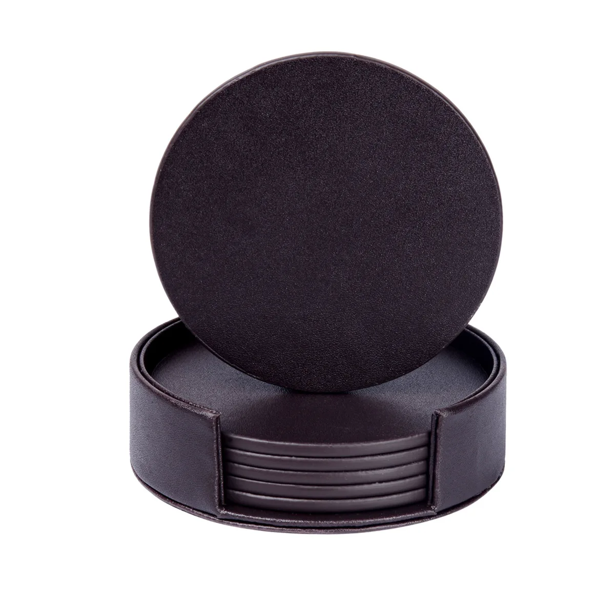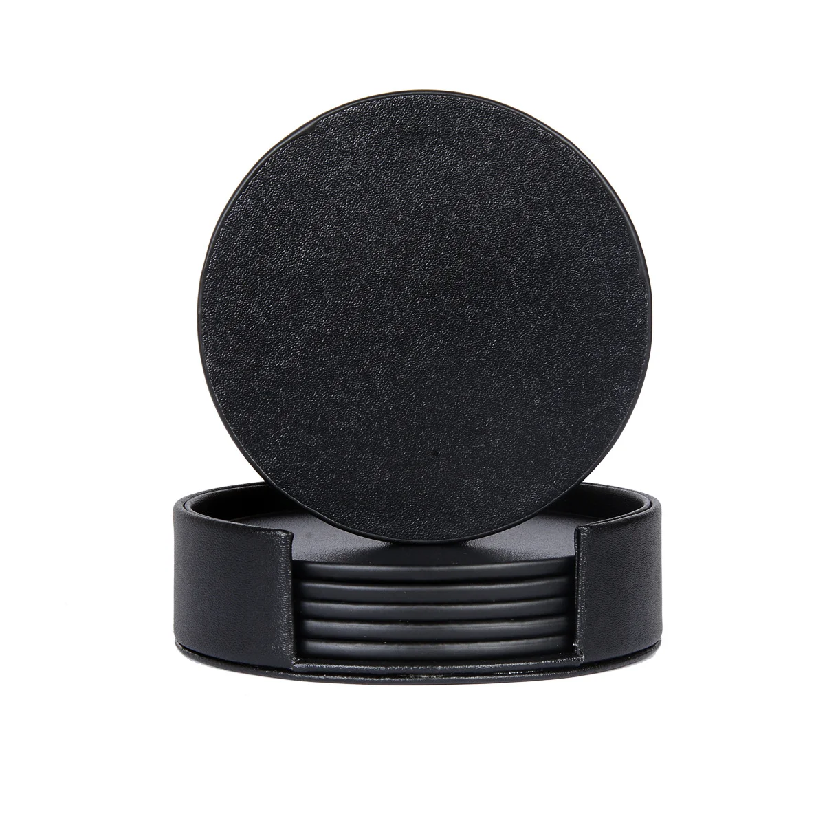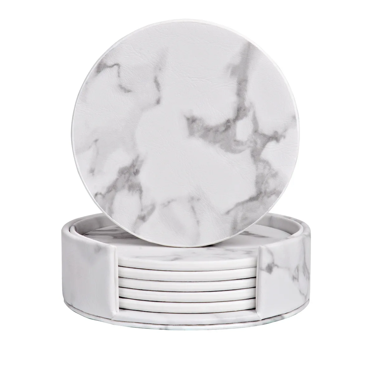 6er-Set Leder-Marmor Untersetzer Ø10 cm – Runde, hitzebeständige Getränkeunterlagen mit Gravur-Option im modernen Stil