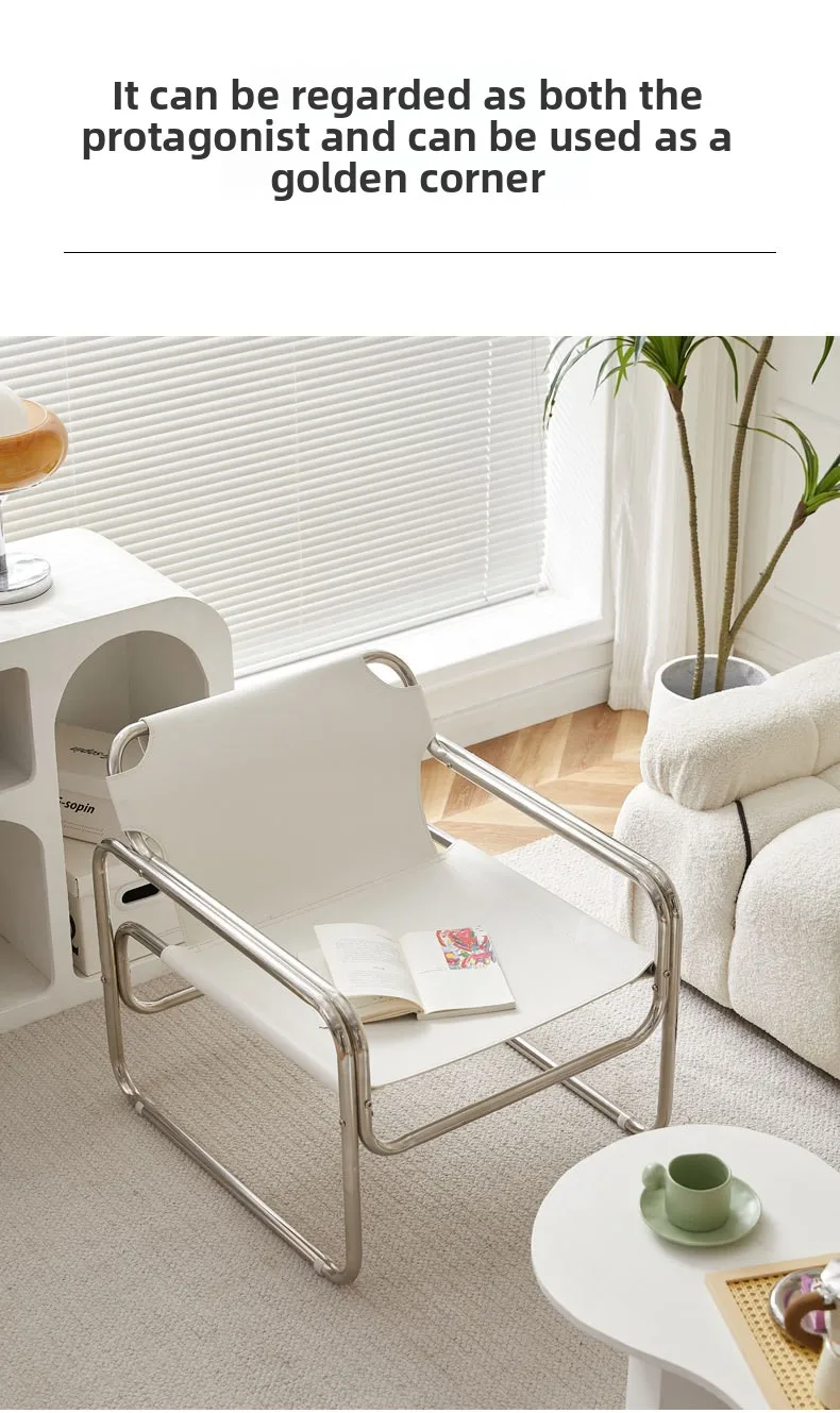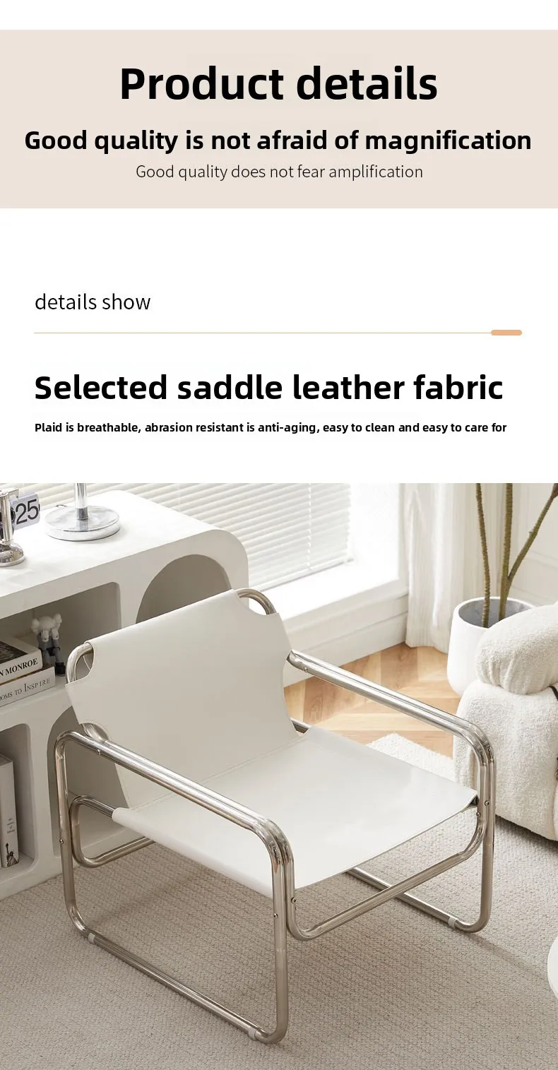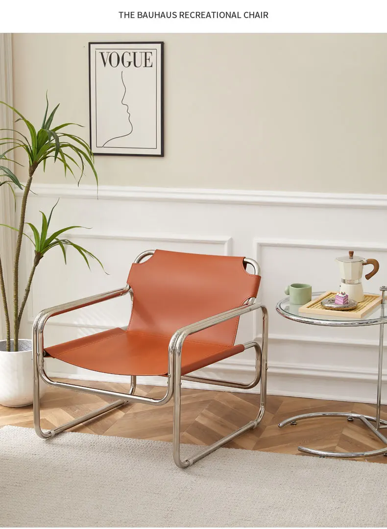 Bauhaus Designer Einzelsessel aus Edelstahl & Sattelleder – Moderner Luxus Leisure- & Relaxstuhl im nordischen Stil