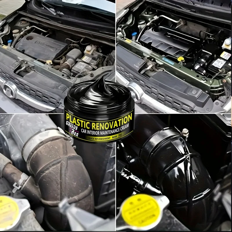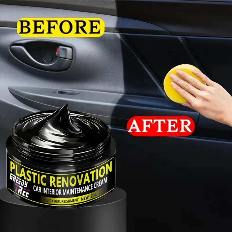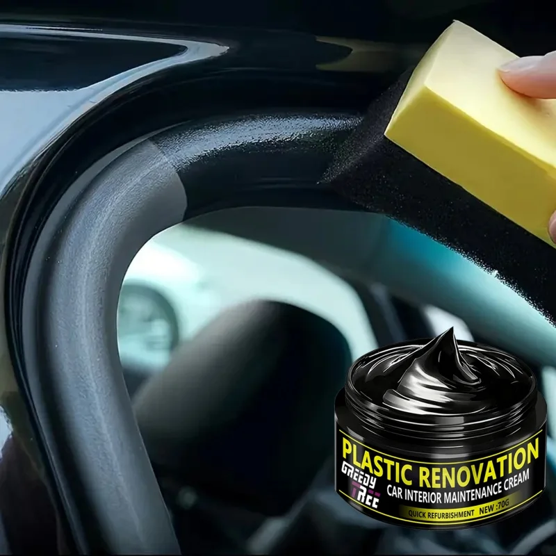 Agent de réparation de plastique automobile – Kristallklarer Leder- & Innenraum-Erneuerungswachs für Auto, Tiefschwarzer Glanz & Schutz