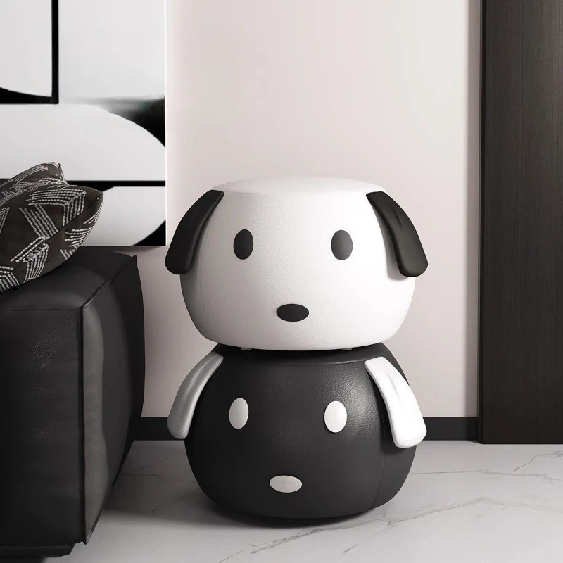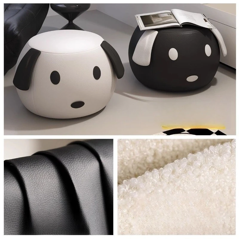 Cartoon Hund Lederhocker – Weicher Sitzhocker & Schuhwechselstuhl aus atmungsaktivem PU-Leder für Wohnzimmer
