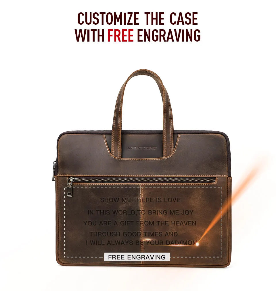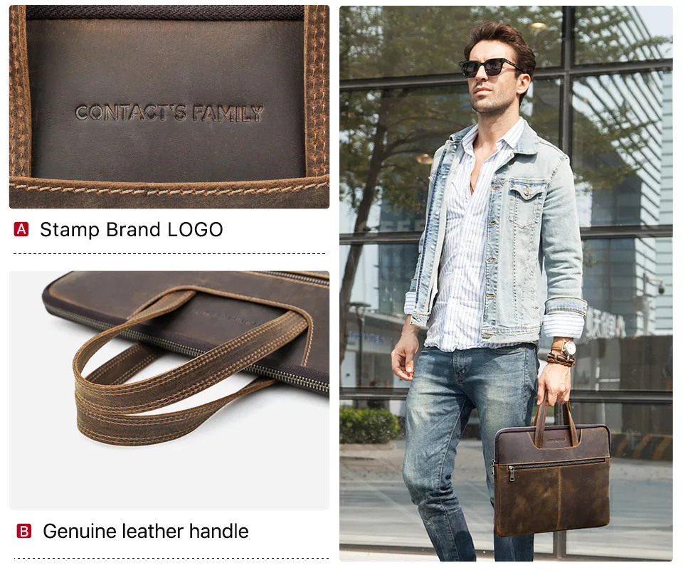 CONTACT'S FAMILY Sacoche d'ordinateur portable en cuir pour homme – Porte-documents véritable pour MacBook Air/Pro 13–16 pouces, sac à main fourre-tout unisexe