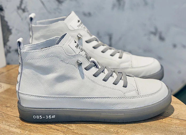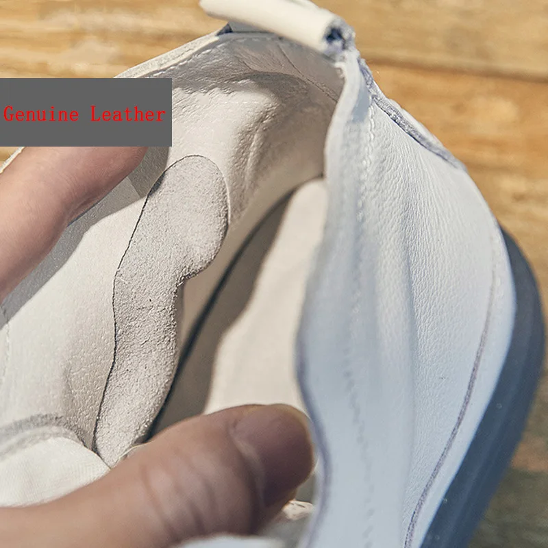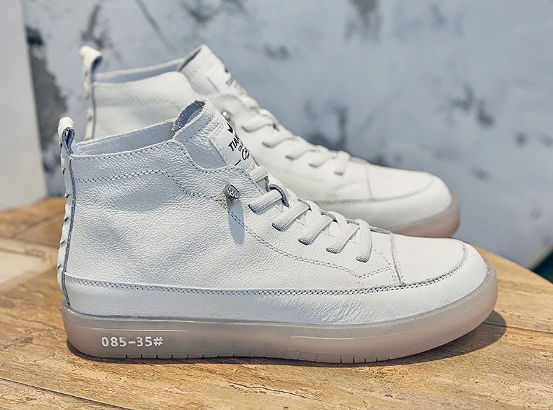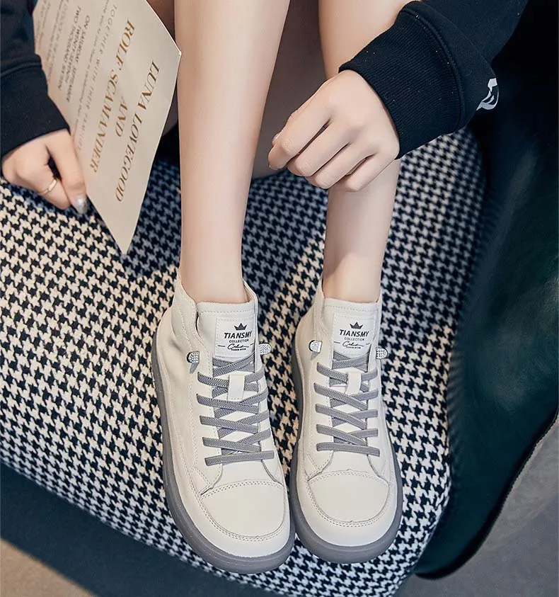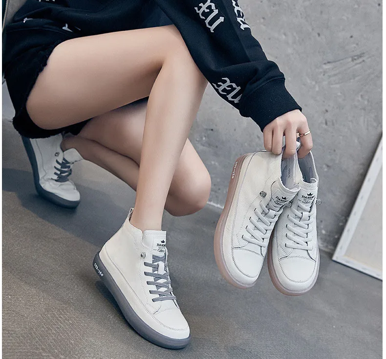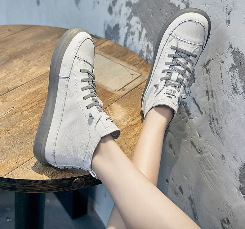 Baskets montantes pour femmes en cuir véritable – Chaussures à lacets avec chaussures vulcanisées, baskets décontractées confortables pour les vacances et les herbes