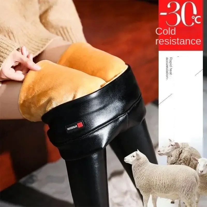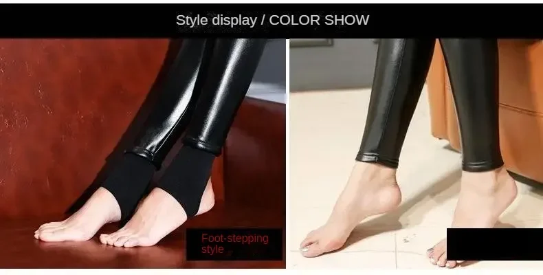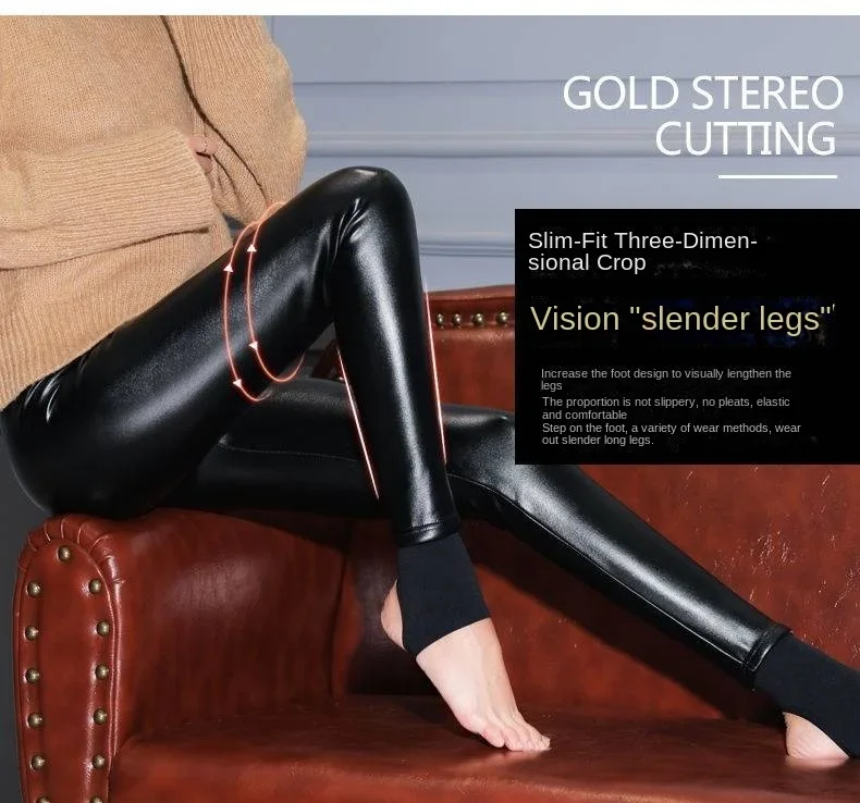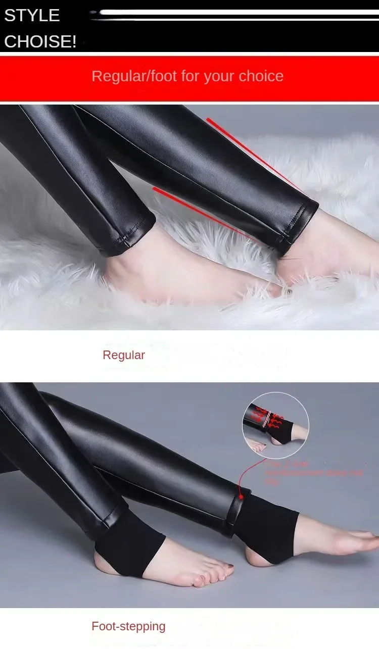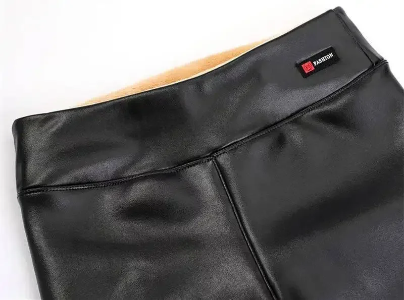 Legging d'hiver en cuir PU pour femme, Extra Dick, taille haute, brillant et formé, chaud, Slim, grande taille S à 5XL
