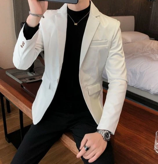 Ce blazer en cuir pour homme est destiné à l'élégance du temps et à un prix spécial dans l'étiquette. Avec son design clair, le design classique et le style coréen moderne, c'est le style idéal pour les hommes, le style, la qualité et le confort sont légendaires. Idéal pour les vêtements simples, gratuits ou un look décontracté élégant dans l'herbe.
