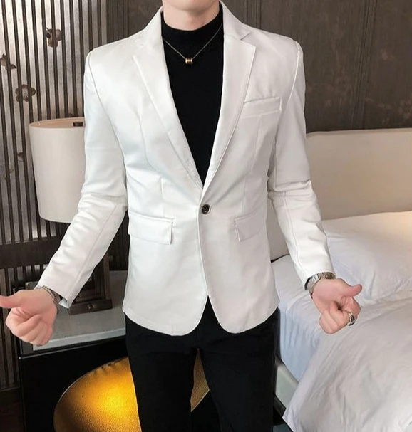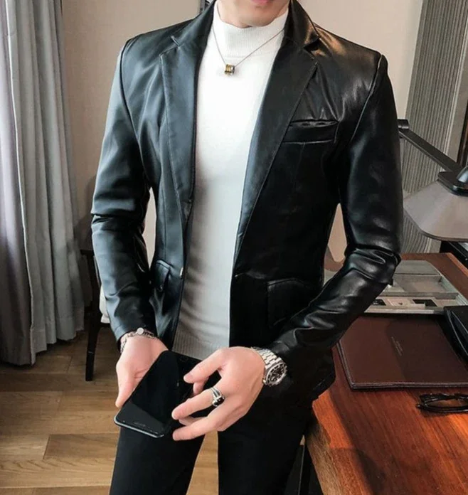 Dünner Herren Lederblazer im classique Stil – Einreihiges Sakko im koreanischen Design, hochwertige Casual Jacke für den Herbst