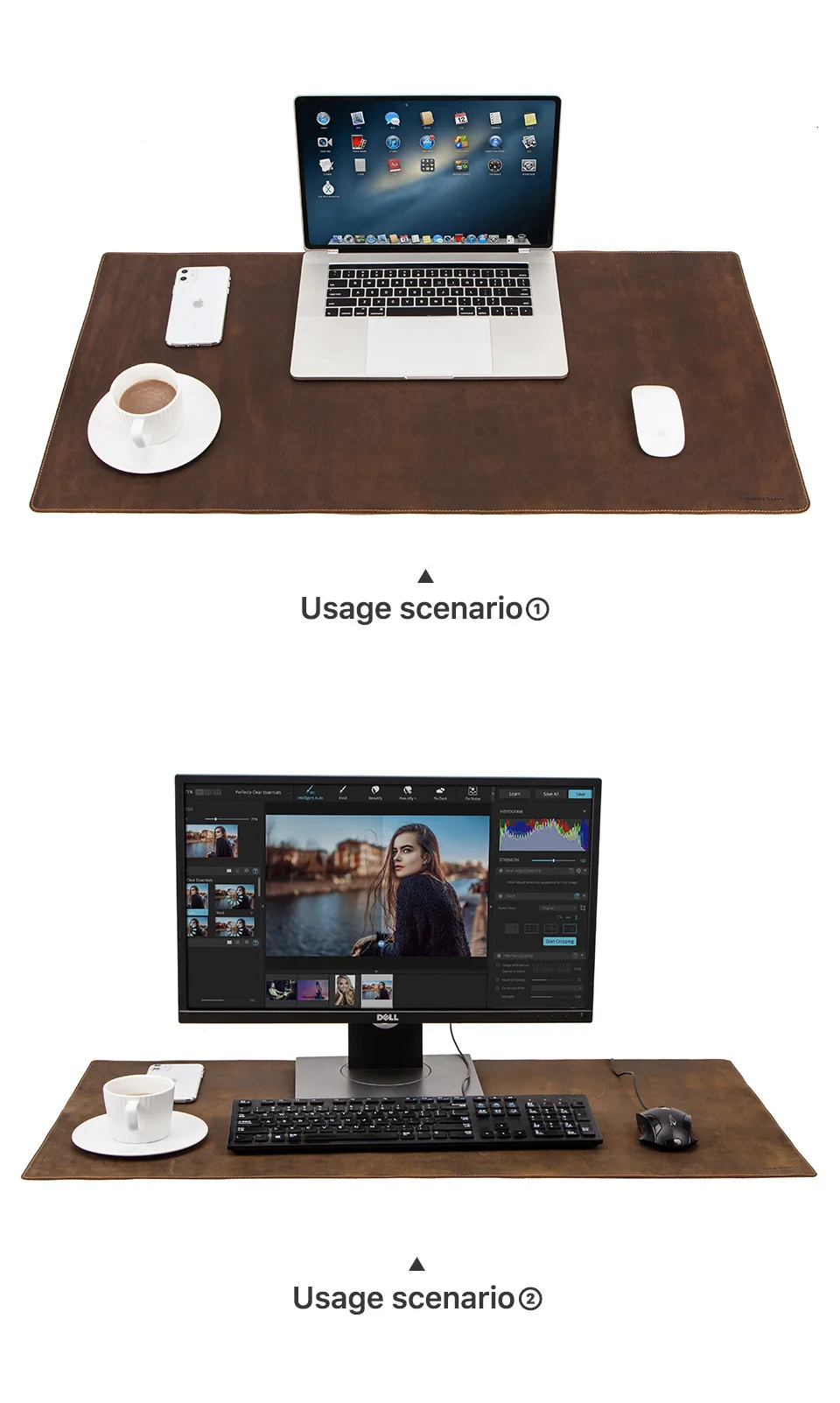 Tapis de souris XXL en cuir véritable 60 × 40 / 80 × 40 / 90 × 45 cm, résistant aux taches et aux taches pour bureau et bureau à domicile