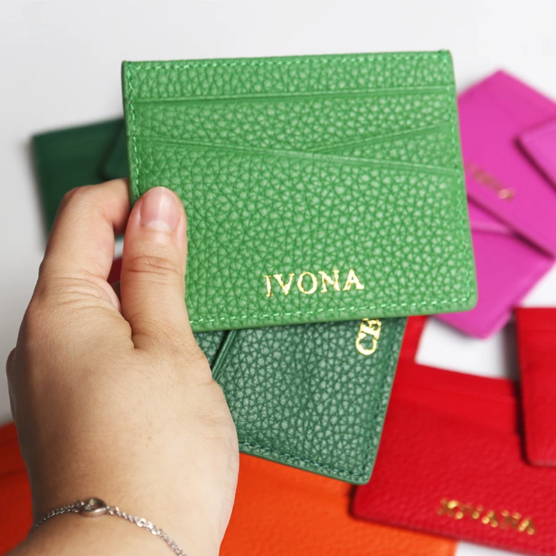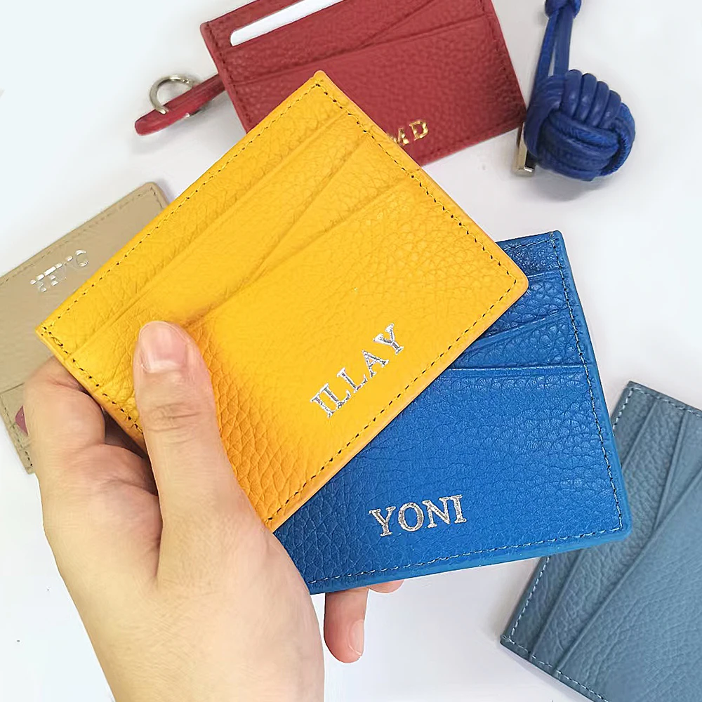 Véritable carte avec initiales – Slim Luxus Card Holder aus Rindsleder für Damen & Herren | Porte-monnaie personnalisé