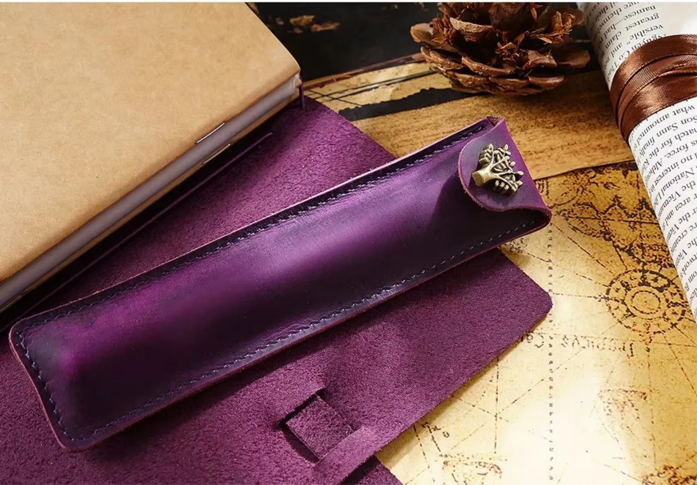 Étui à crayons en cuir véritable au dos – Étui à stylos Schlankes pour un étui à crayons | Étui à stylos en cuir élégant pour voyages, carnets de notes et journaux