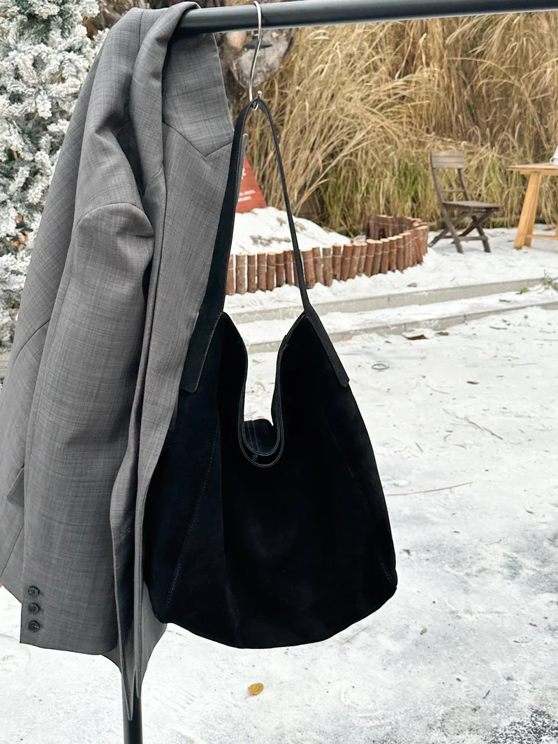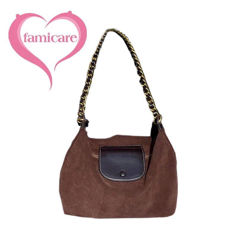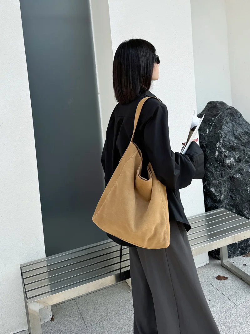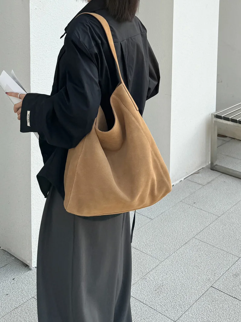 famicare 2025 Sac fourre-tout en cuir givré pour femme – Grand sac à main seau en daim, pochette Hobo minimaliste sous les bras