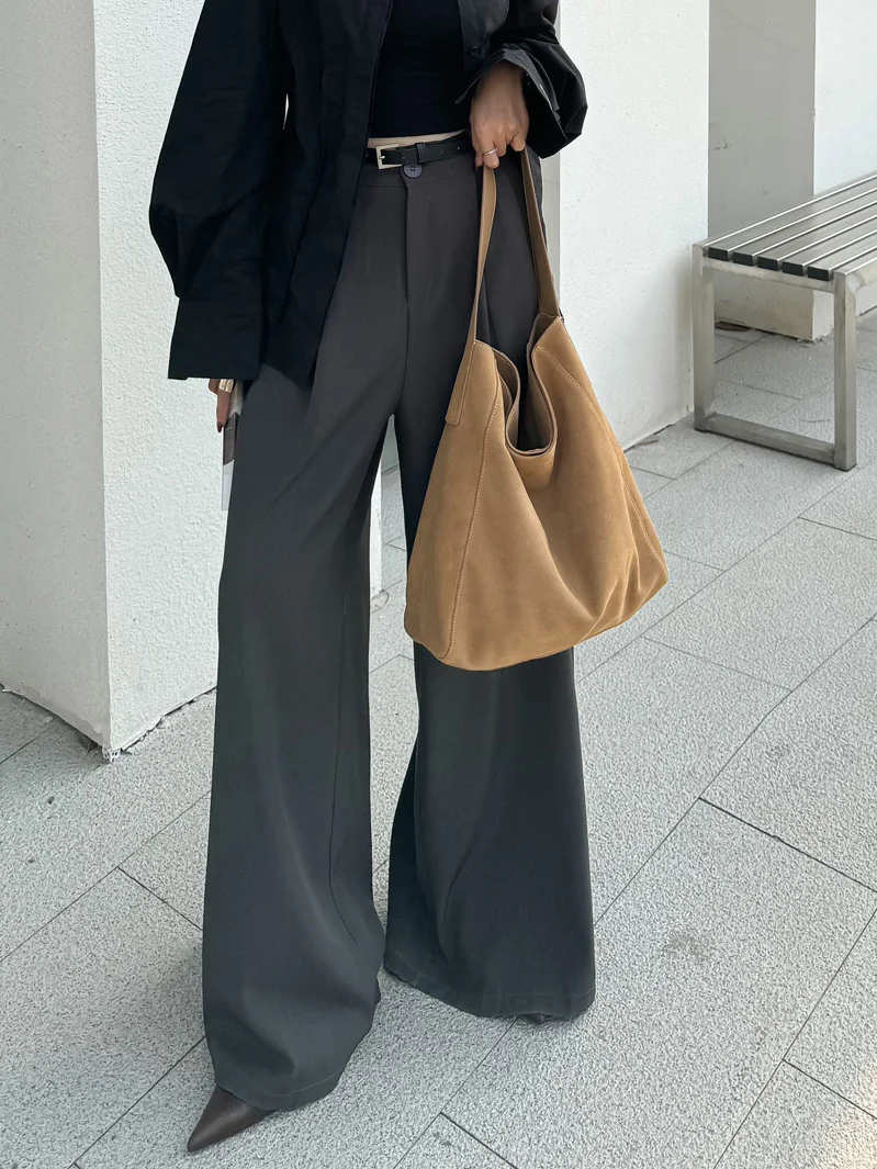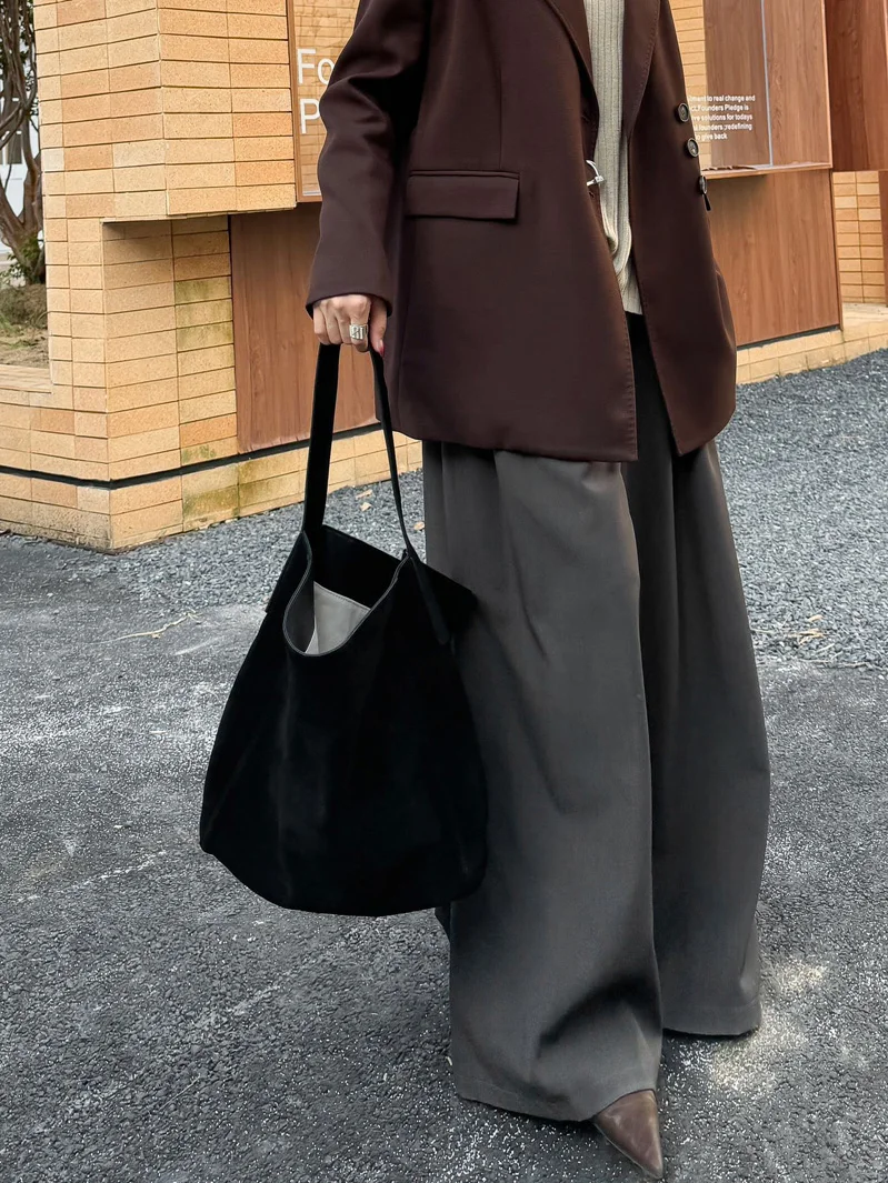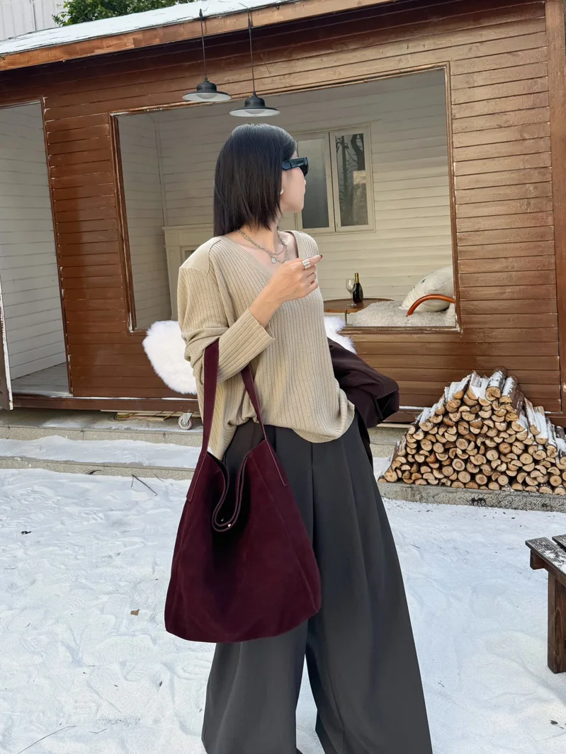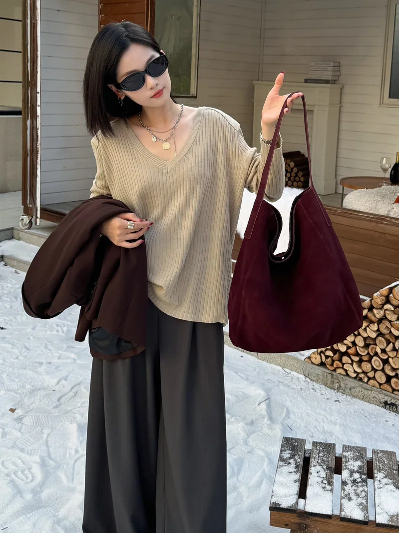 famicare 2025 Sac fourre-tout en cuir givré pour femme – Grand sac à main seau en daim, pochette Hobo minimaliste sous les bras