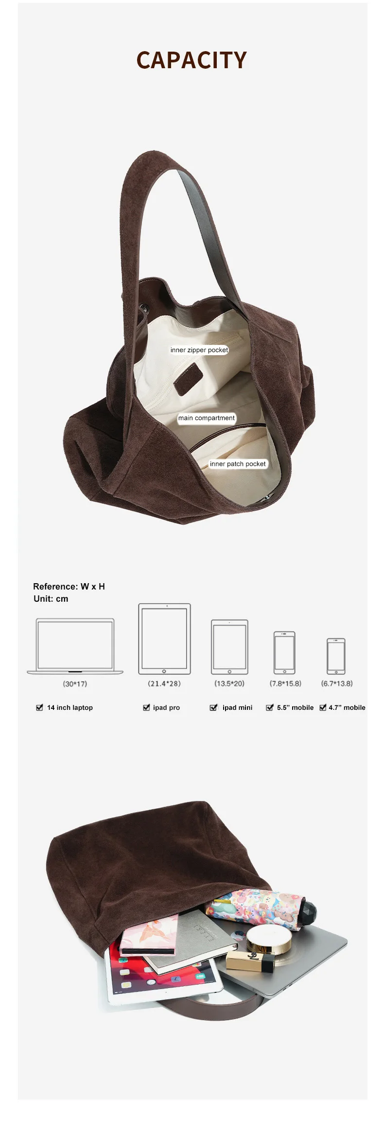 Le célèbre sac fourre-tout en cuir givré pour femmes est doté d'un design minimaliste, de matériaux luxueux et d'une grande capacité . Votre sac en cuir suédé est élégant et fait de votre sac un accessoire parfait pour les bijoux, les bureaux, les loisirs ou le shopping .
