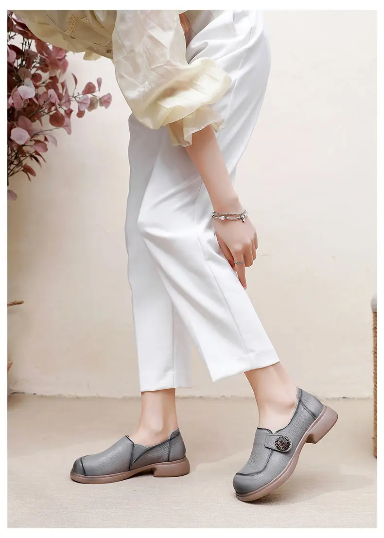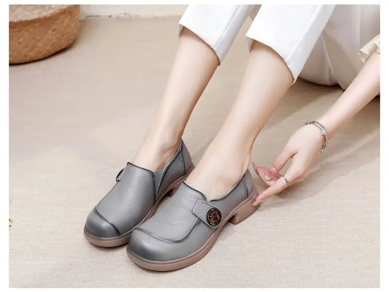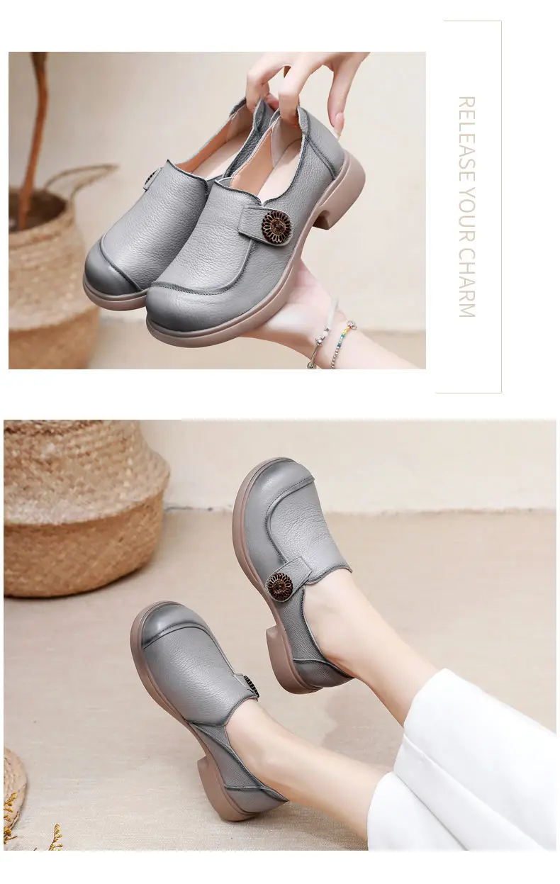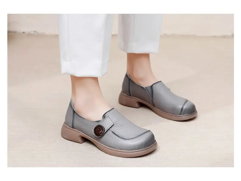 feerldi Damen Leder Flats WB-06K – Mocassins élégants à enfiler, mocassins confortables avec petits talons, chaussures plates grises