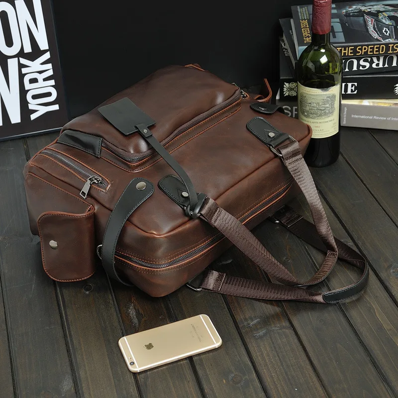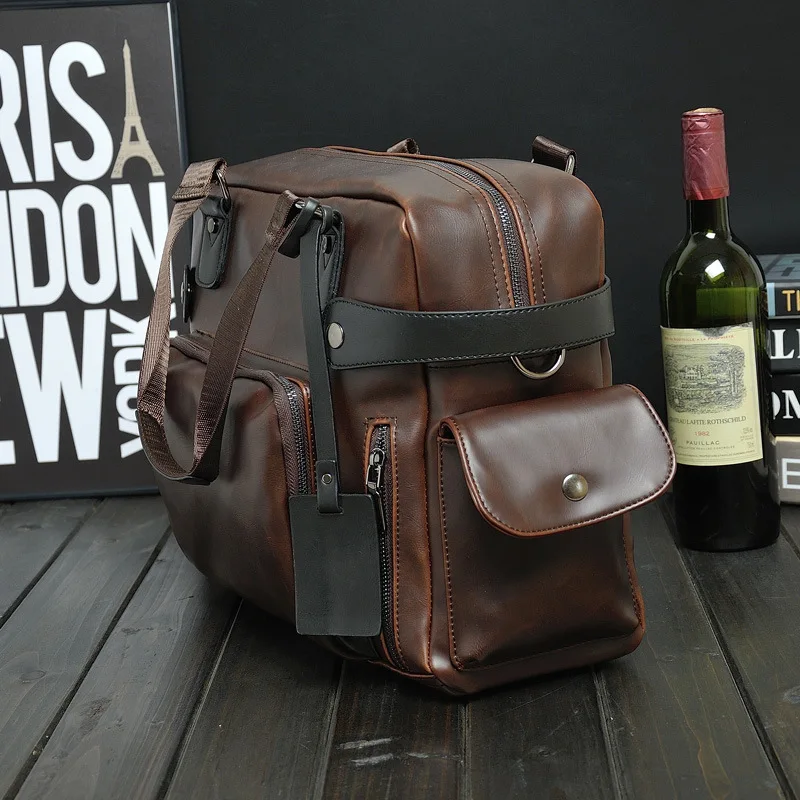 GOYN Sac de voyage unisexe en café - Grand sac de transport en cuir PU, sac à dos et bandoulière avec sac de voyage