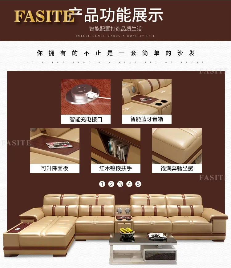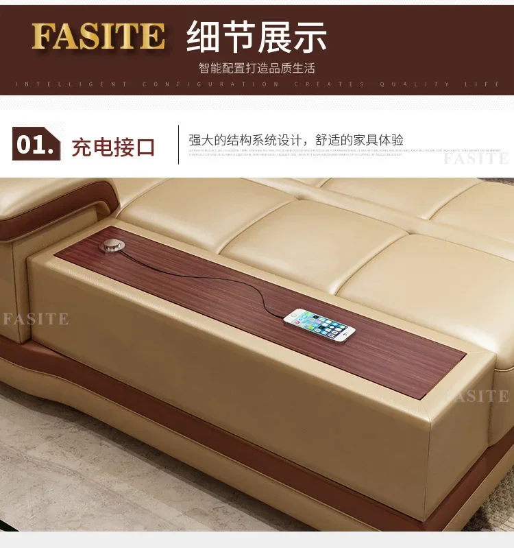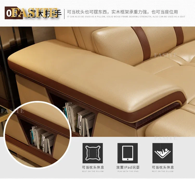 Grand canapé-lit en cuir véritable avec support – Canapé d'angle classique en forme de L, canapé luxueux pour femmes de style