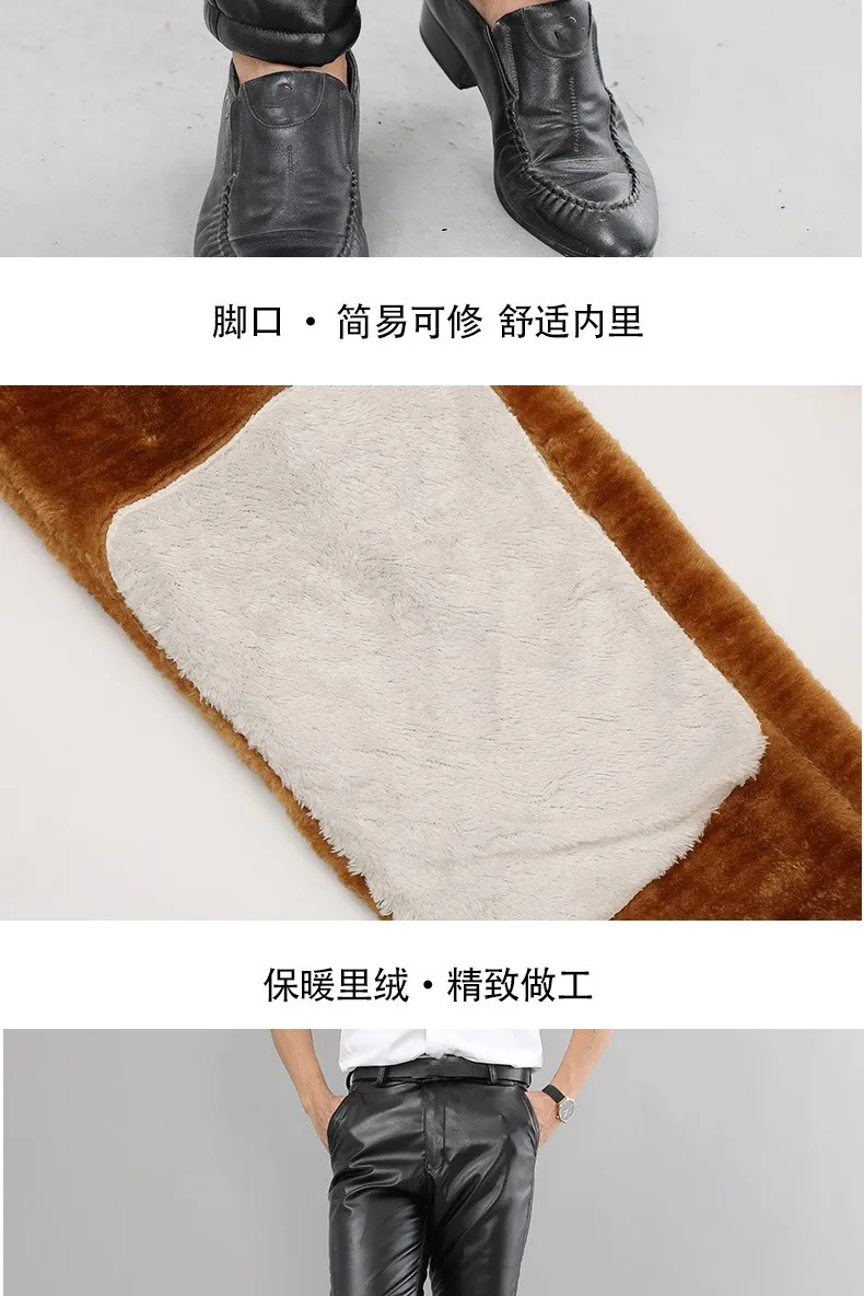 Pantalons surdimensionnés en cuir PU pour hommes avec hohem Bund – Pantalons d'hiver chauds et coupe-vent en tissu épais (Gr. 29–42)