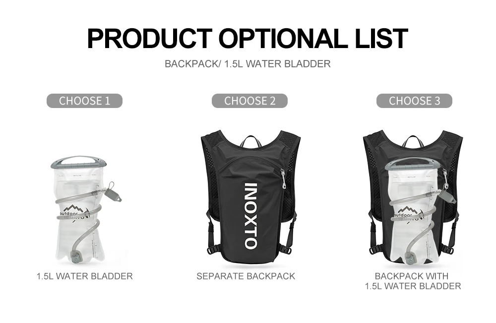 Le sac à dos INOXTO est ultraléger grâce à son design ultraléger, à son matériau résistant à l'eau, à sa haute activité, à sa forme ergonomique et à son sac de rangement intégré de 1,5 L. Il est fonctionnel, confortable et idéal pour la course à pied, le VTT et le fitness.