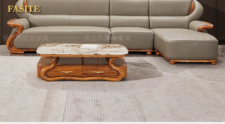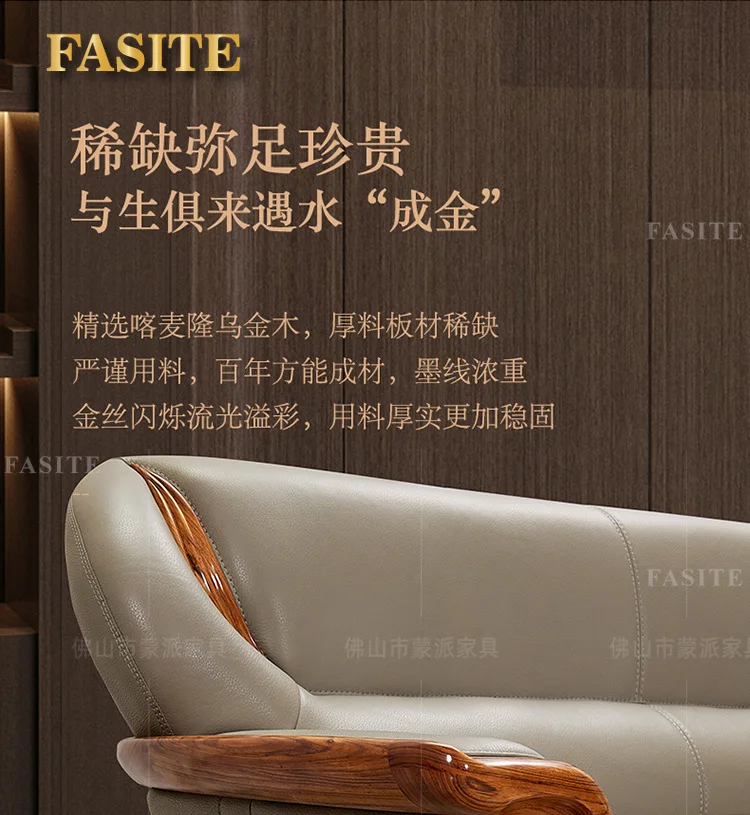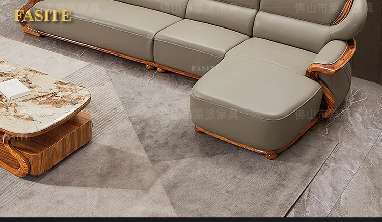 Luxuriöses Ecksofa aus Ebenholz & Echtleder – Nouveau canapé en cuir de style chinois en forme de L, haut de gamme pour les femmes stilvolles
