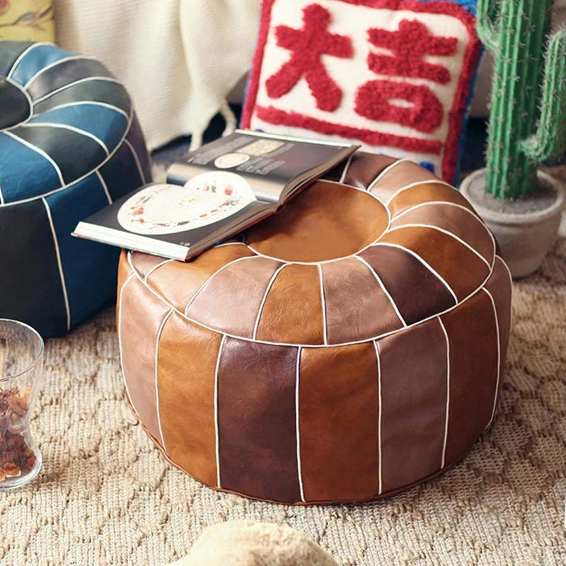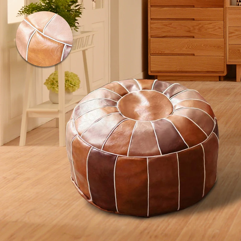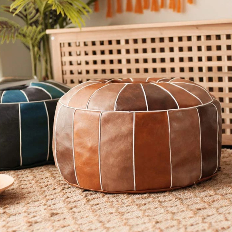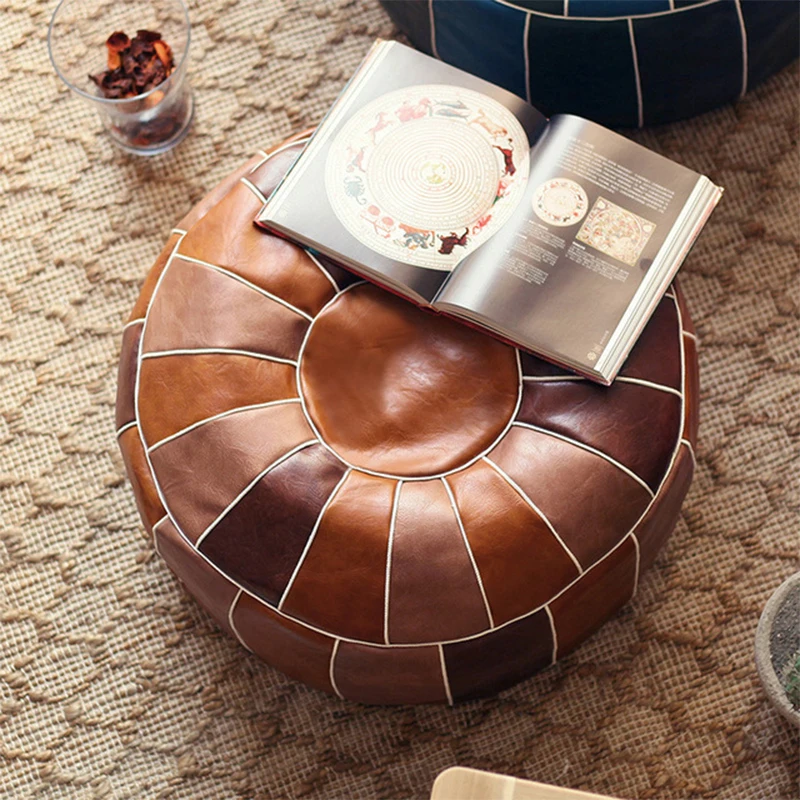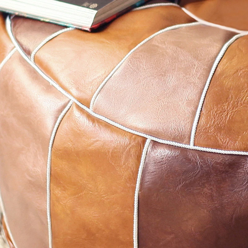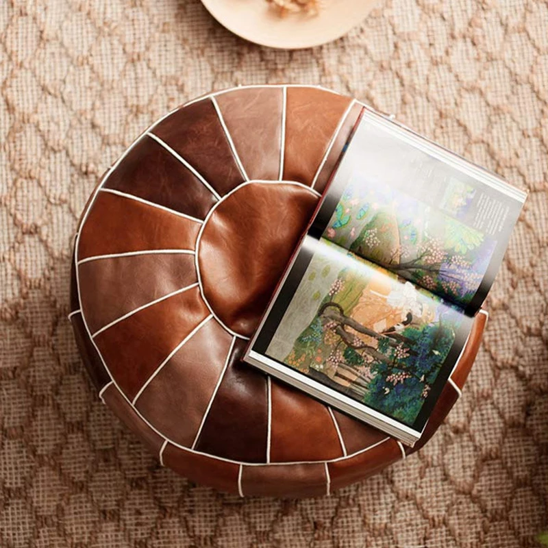 Pouf en cuir PU marokkanischer avec autocollants – Grand repose-pieds et coussin 50 × 35 cm, non tissé, fabriqué à la main