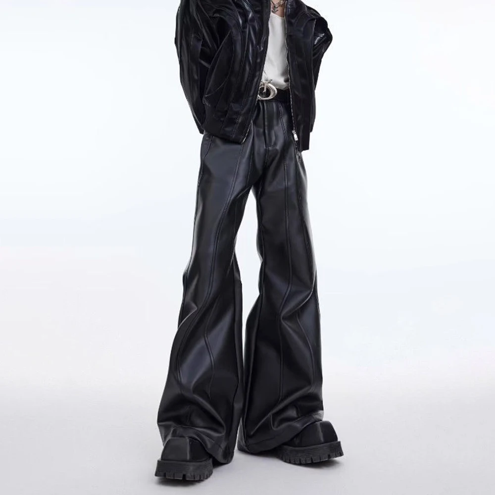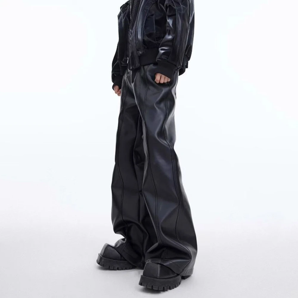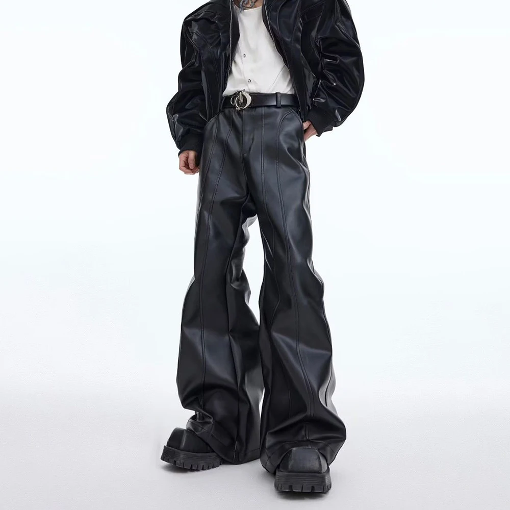 Pantalon en cuir PU pour homme, style déstructuré en trois dimensions, coupe droite, tendance streetwear, style campus, vêtements décontractés pour hommes