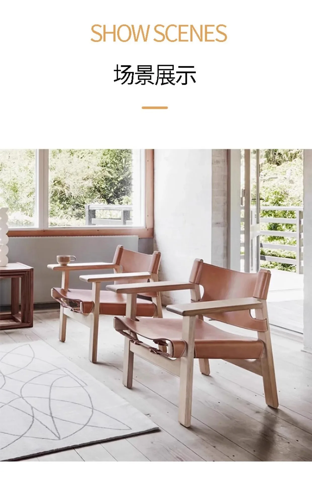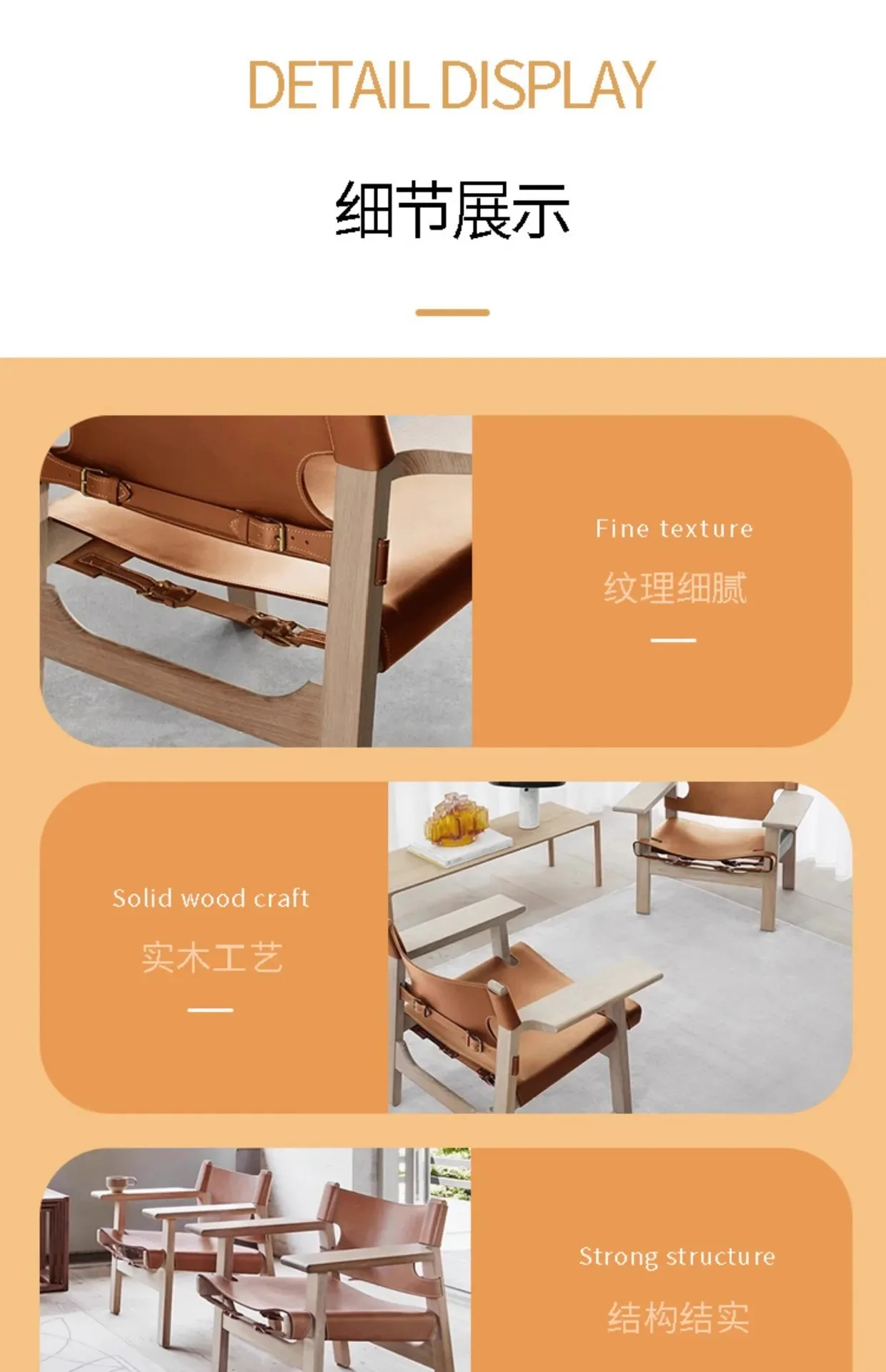 Cette chaise longue simple nordique présente un design minimaliste, des matériaux naturels et une esthétique moderne. Inspiré du style de vie Wabi-Sabi, le modèle est destiné à la Russie, à l'authentification et aux belles femmes. Mit seiner klaren Form, warmen Holztönen and der markanten Sattelleder-Optik wird er zum stilvollen Highlight in Wohnzimmer, Balkon oder Leseecke.
