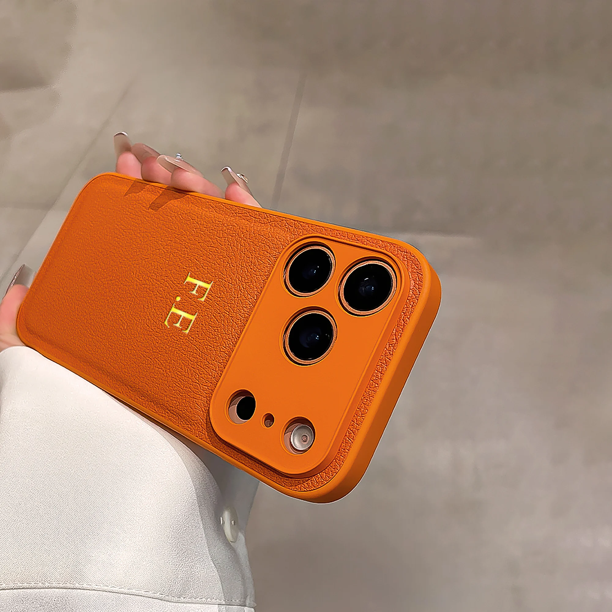 Utilisez votre smartphone pour un véritable appareil avec cette coque en cuir iPhone personnalisée avec nom . La combinaison d'œuvres d'art haut de gamme dans une couleur orange et un rendu 3D plus doré permet à votre iPhone de créer un look exclusif, le confort en août tombant. Idéal pour tous les styles, individualités et qualités.