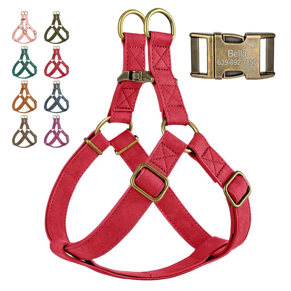 Gilet en cuir PU personnalisé avec gravure nominative – Gilet robuste pour chien, conçu avec un harnais pour petits, petits et grands chiens