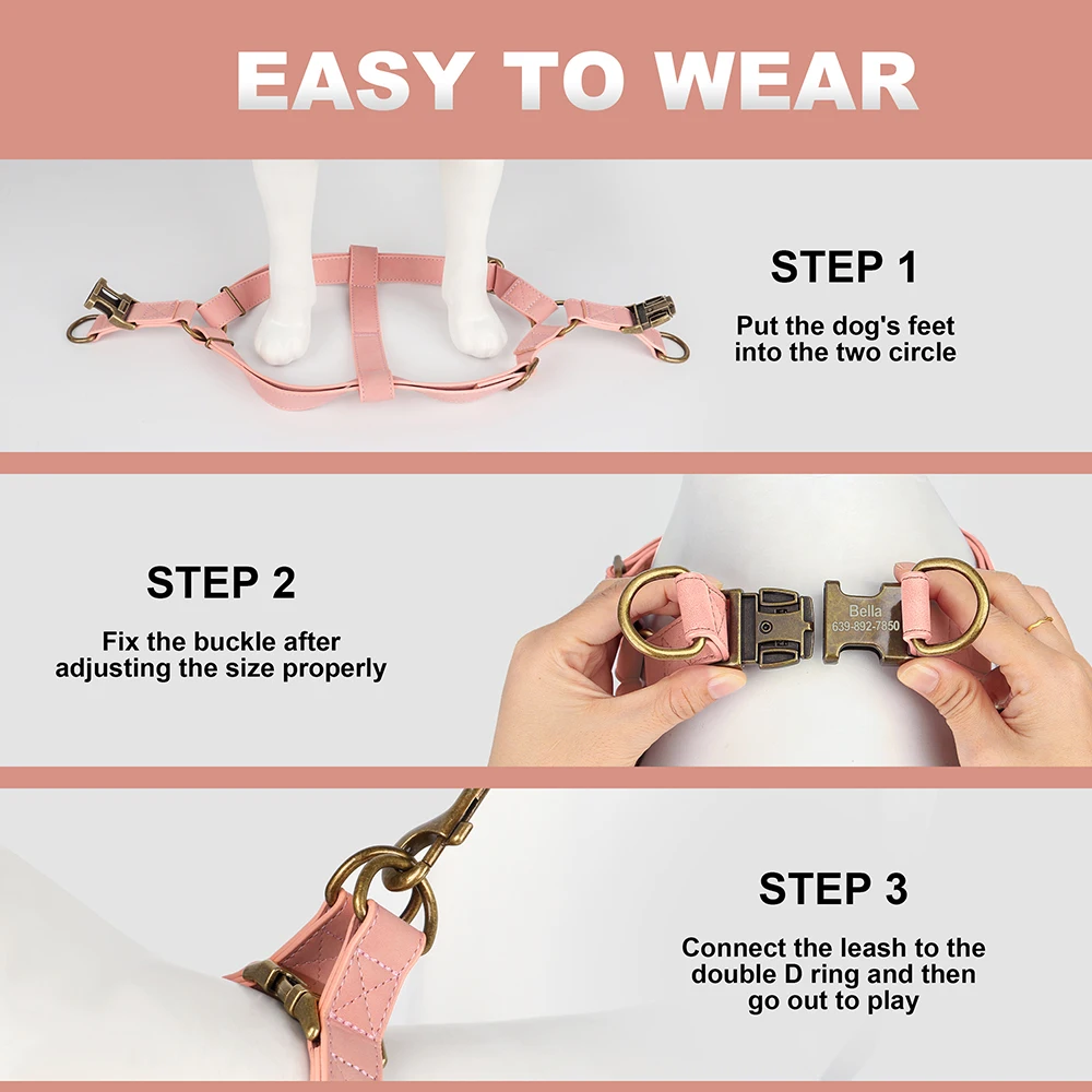 Setzen Sie auf ain personalisiertes hundegeschirr , the Komfort, Sicherheit and Design vereint. Wählen Sie Farbe und Größe, geben Sie den Namen and und erhalten Sie ein PU Leder Hundegeschirr , das im Alltag überzeugt. Jetzt personalisieren et entspannt spazieren gehen.