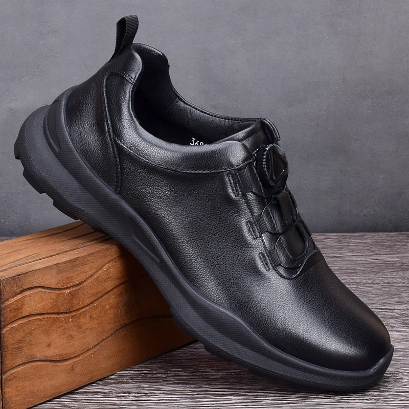 Pontallon Herren Leder Sneaker – Rotierende Schnalle, leichte Cowhide Loafers, Jogging- & Walking-Schuhe, imperméable