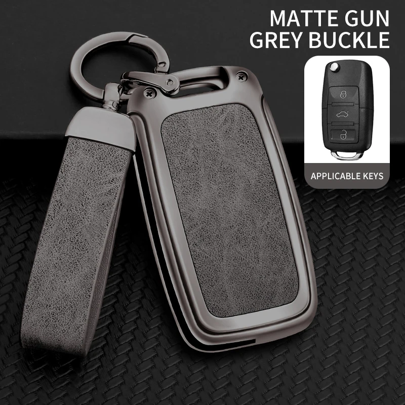 Étui de clé de voiture Premium en métal et cuir pour VW, Skoda et Seat – Housse de clé pour Polo, Golf, Passat, Tiguan, Octavia, Leon et plus