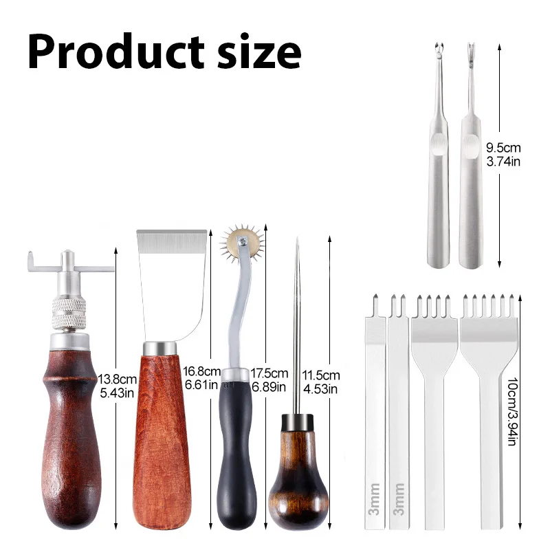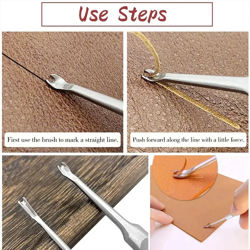 Das Set enthält more Nahtkanal-Groover (Slotter) , die präzise Rillen für gleichmäßige Stiche erzeugen. Donc liegen Nähte geschützt et optique sauber im Leder. Das Stichrad (Scribing Wheel) marque les Nahtabstände exactement et prend en charge une Stichführung professionnelle – unverzichtbar für ein gleichmäßiges Gesamtbild.