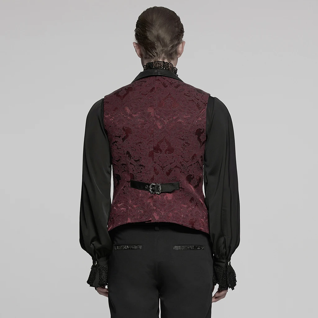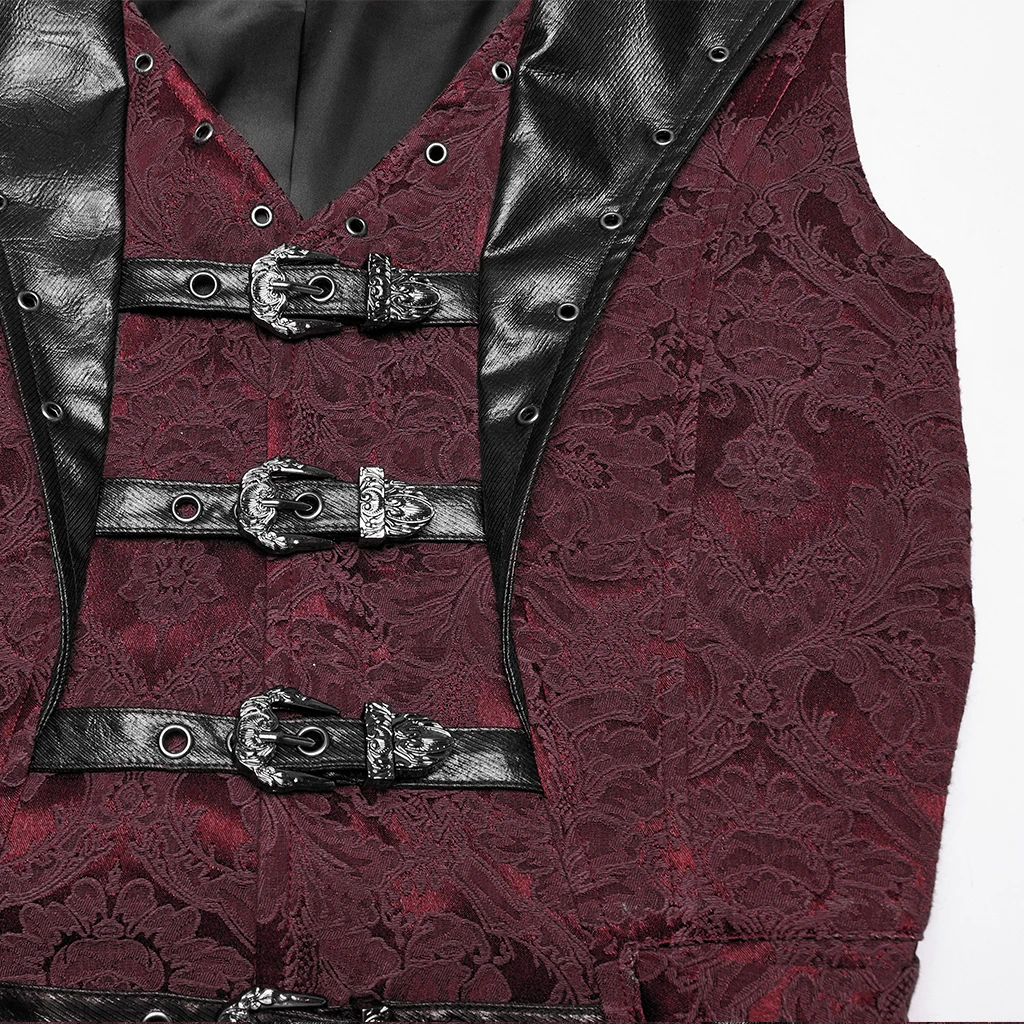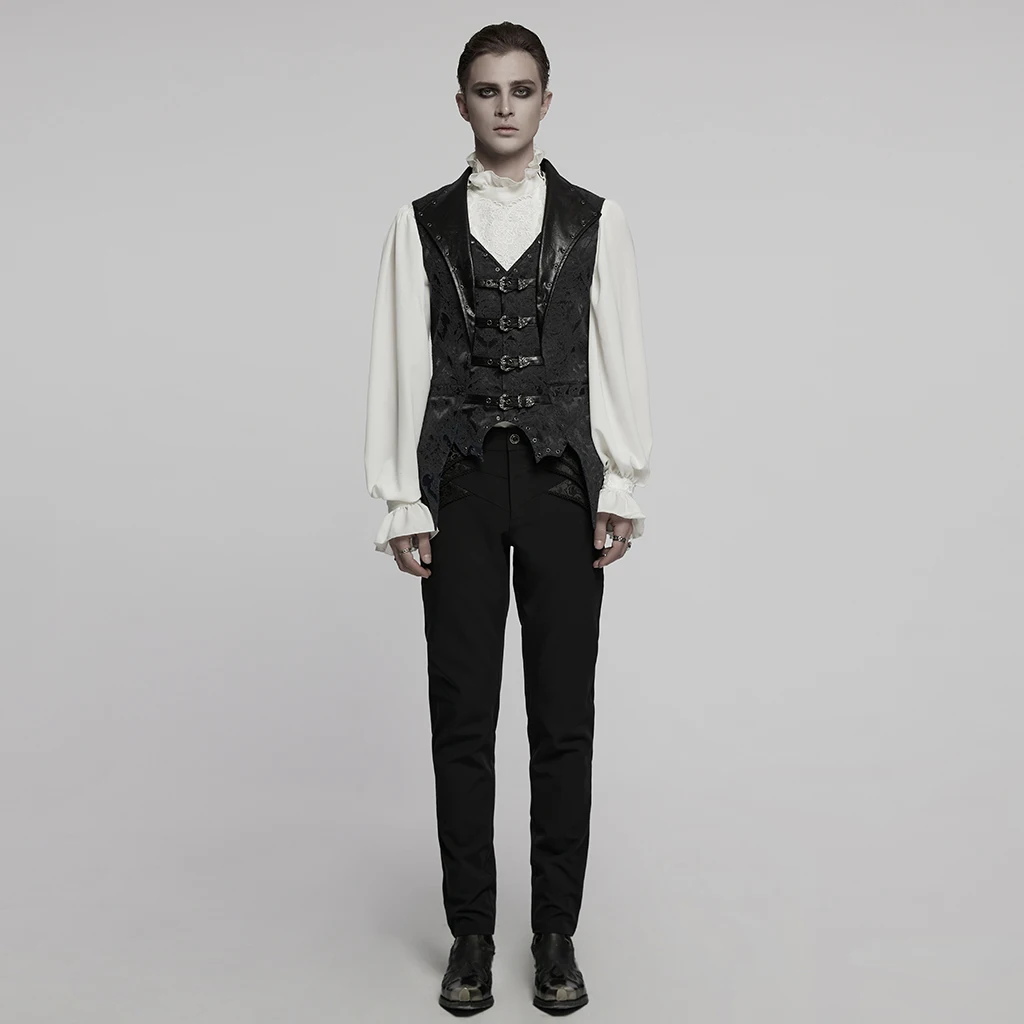 PUNK RAVE Hommes Gothique Cuir - Gilet à Revers Jacquard avec Pantalon en Cuir, Edle Slim Fit Weste pour Party & Dark Fashion