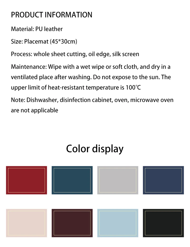 Ensembles de vaisselle en cuir rechteckige – Fête de l'huile et de l'eau, plats isolés au style européen pour cuisine et cuisine