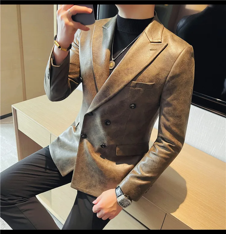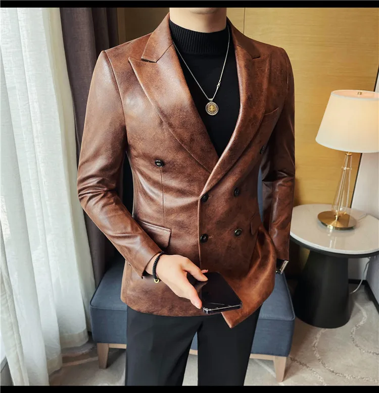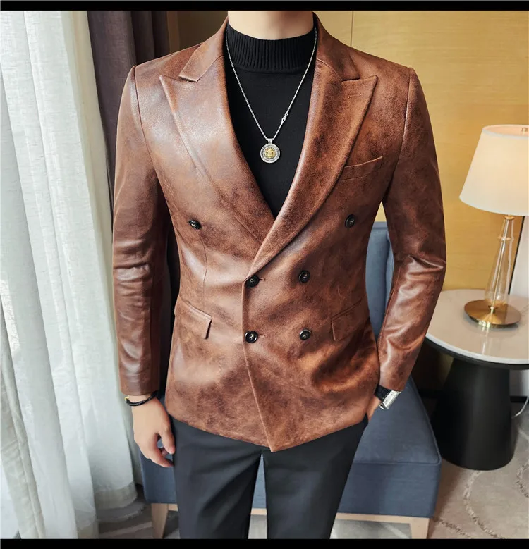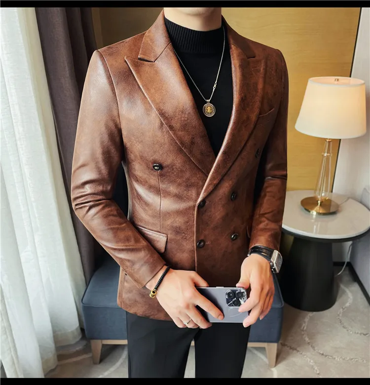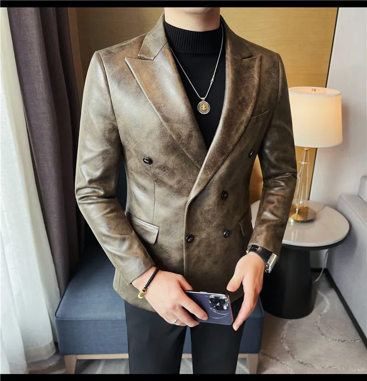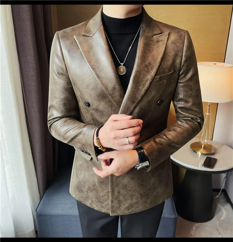 Rétro homme en cuir Sakko dans le style britannique – Blazer slim plus élégant pour les affaires, le temps, les fêtes et les banques