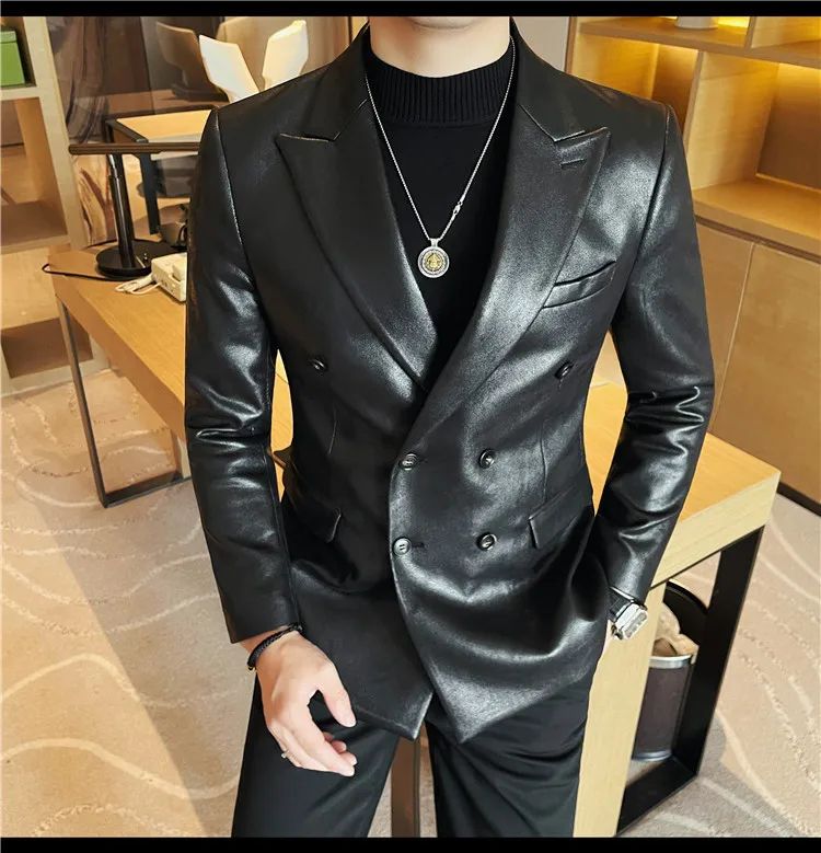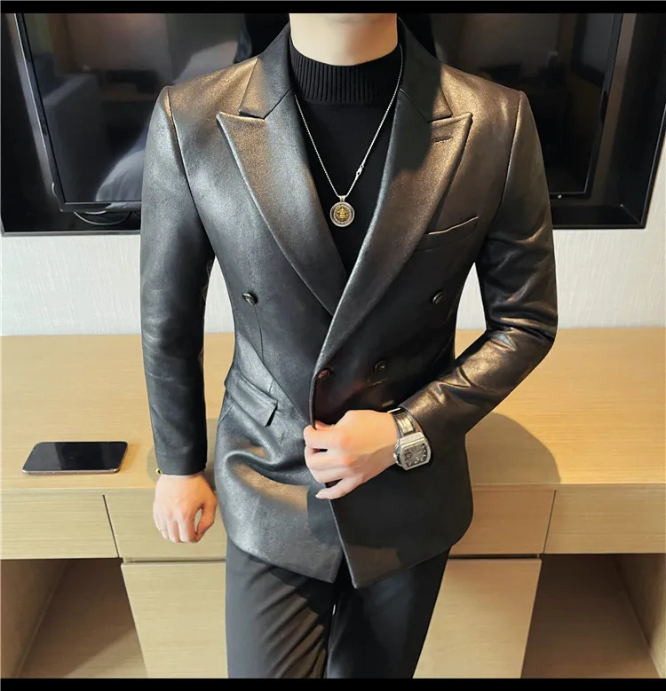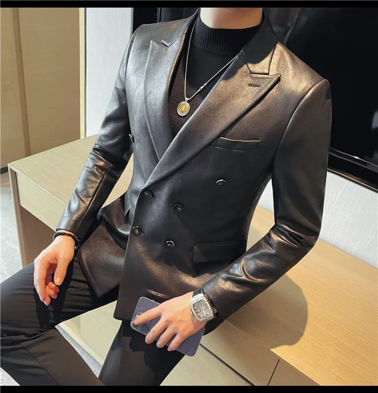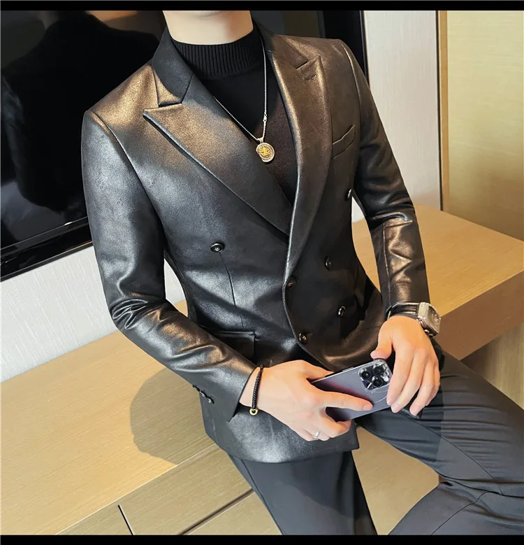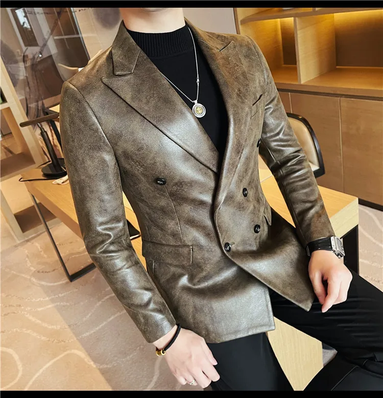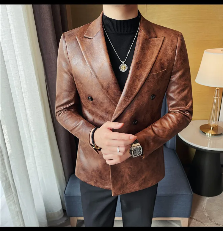 Rétro homme en cuir Sakko dans le style britannique – Blazer slim plus élégant pour les affaires, le temps, les fêtes et les banques