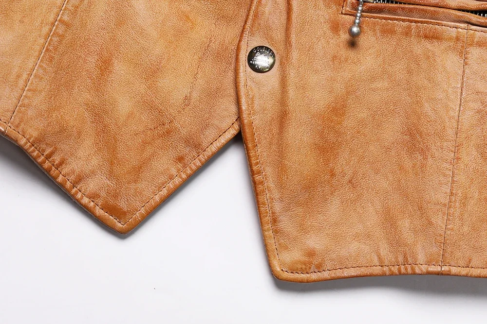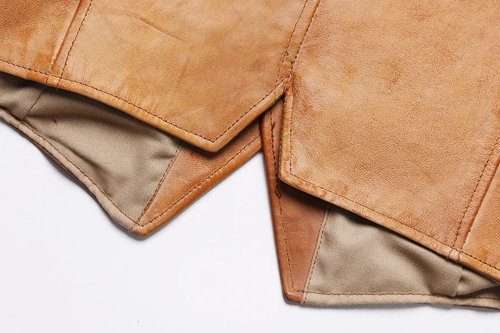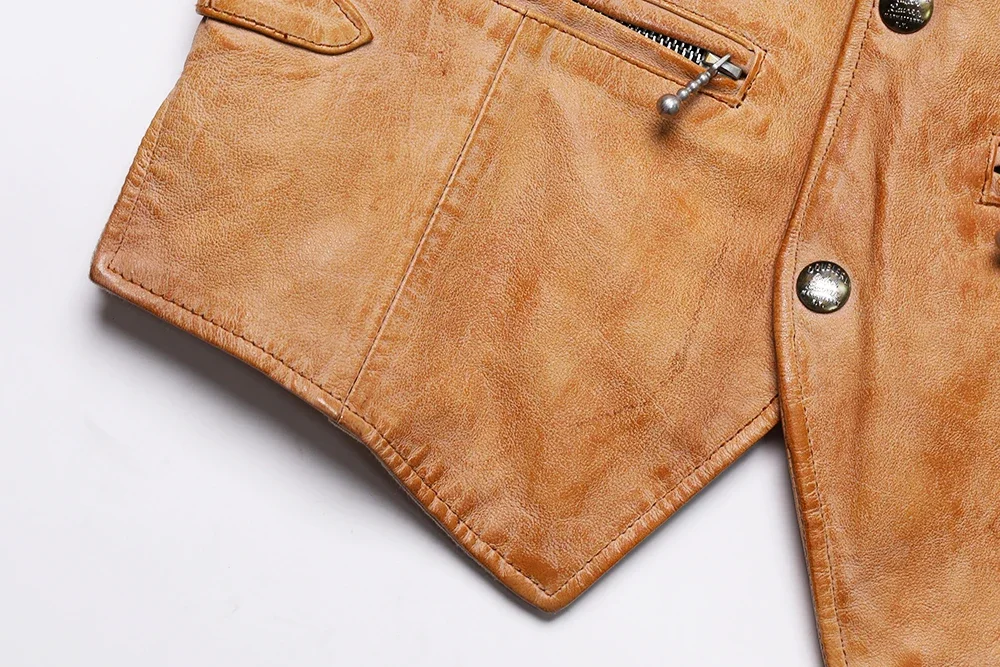 Gefertigt aus hochwertigem Schafs- und Ziegenleder überzeugt die Weste through ihre natürliche Struktur, angenehme Haptik et longanglebige Qualität. Das Leder passe sich mit der Zeit Ihrem Körper and entwickelt eine einzigartige Patina – un echtes Merkmal hochwertiger Vintage-Lederbekleidung. Das Innenfutter aus Baumwolle sorgt zusätzlich für ein angenehmes Tragegefühl zu jeder Jahreszeit.