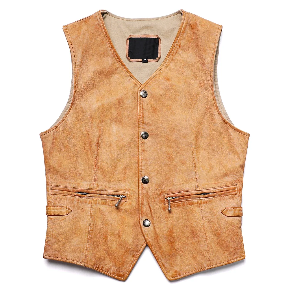 Retro Vintage Herren Lederweste aus Schafs- & Ziegenleder – Gelbe Slim Fit Weste mit V-Ausschnitt, kurz & ärmellos