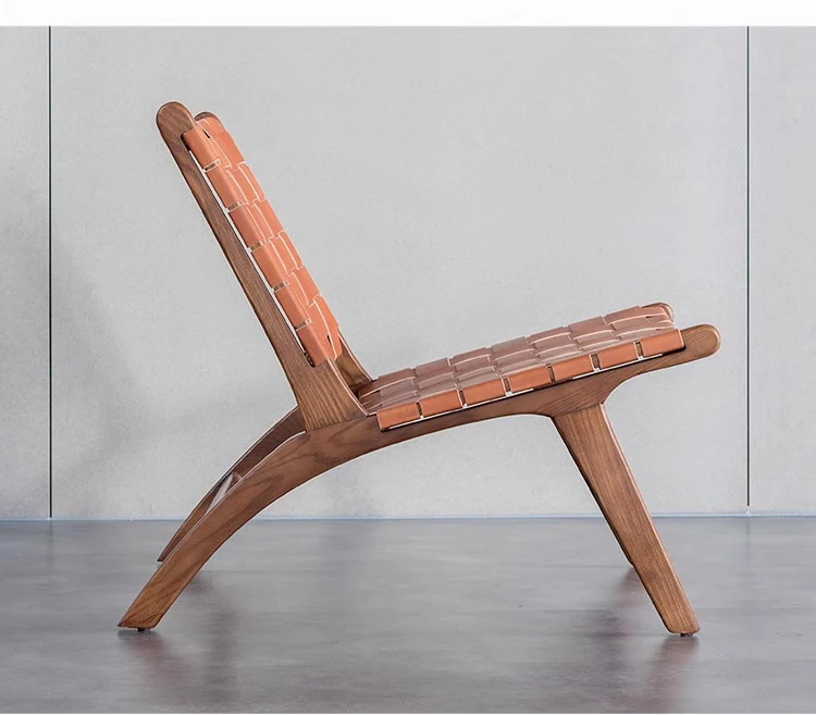 Sattel-Lounge Chair aus Eiche & Rattan – Hochwertiger Freizeitstuhl mit Lederoptik für Balkon, Wohnzimmer & Leisure Area