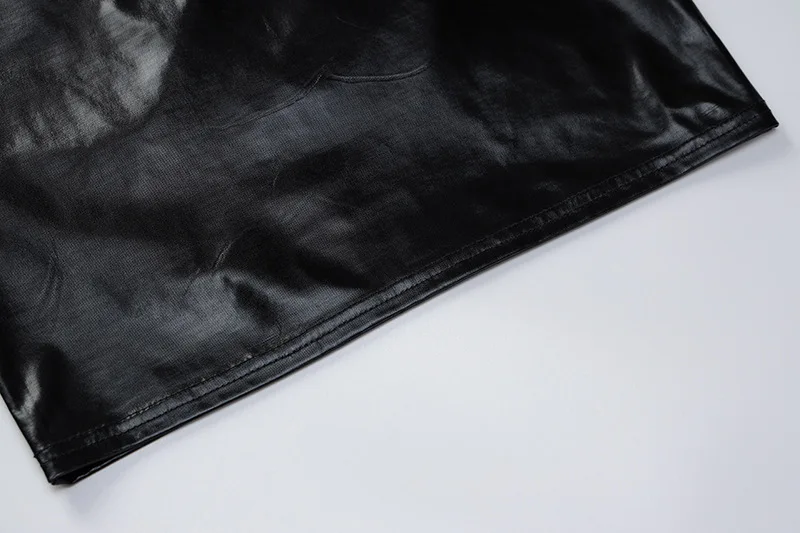 Mini jupes sexy en PU brevetées en argent – ​​Robes moulantes avec bretelles spaghetti pour club et fête