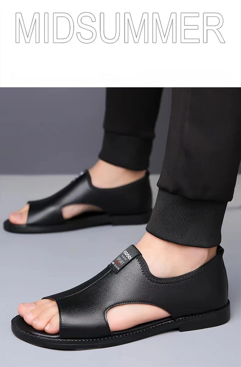 Sandales homme en cuir, style créateur, décontractées et confortables pour l'été, idéales pour la plage et les activités de plein air. Modèle antidérapant. Collection 2024.