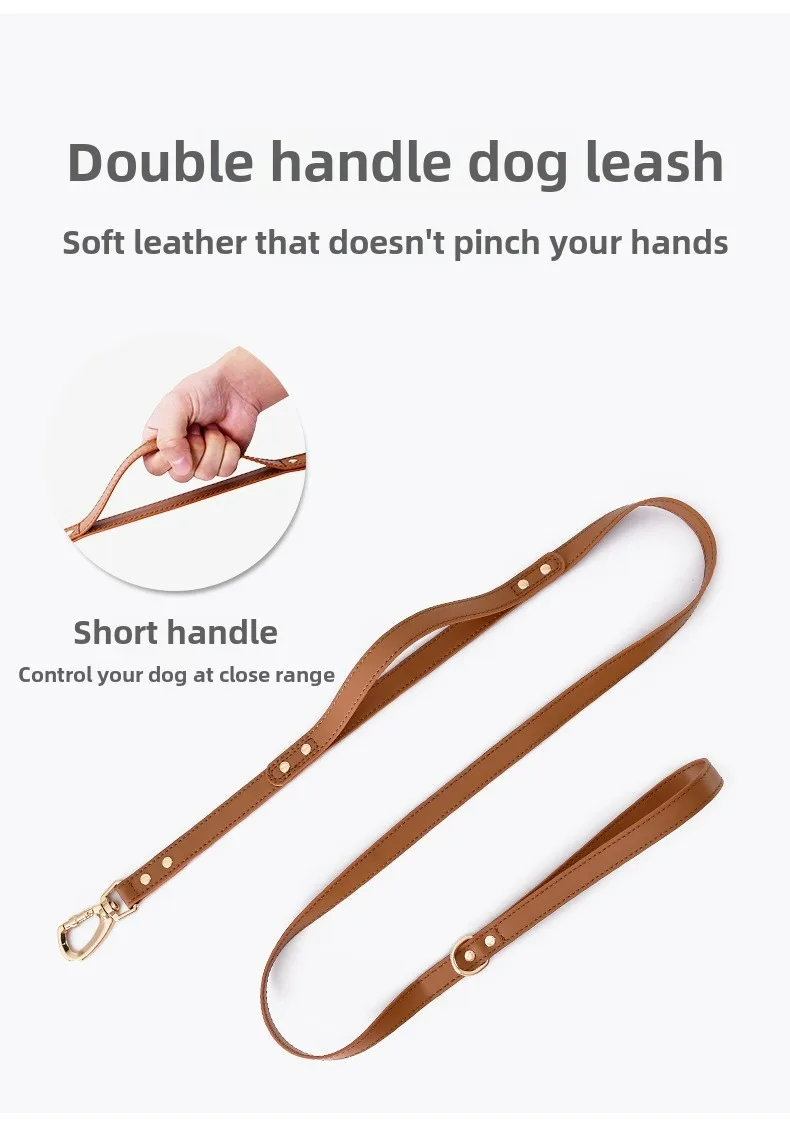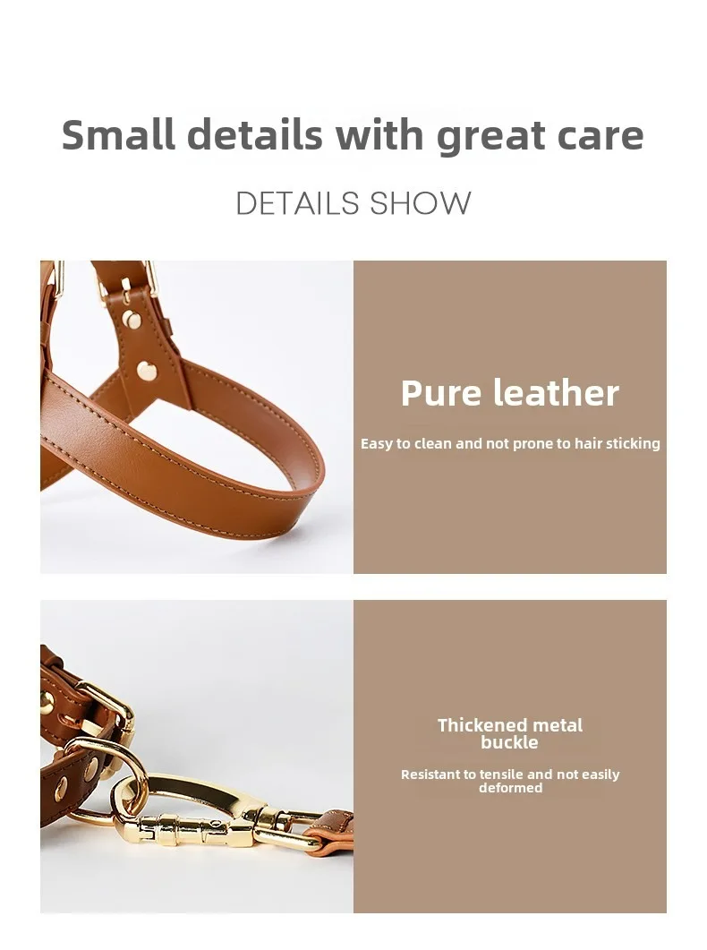 Ce set de chiens en cuir peut être personnalisé et adapté aux animaux de compagnie. Erhältlich in mehreren Farben – Schwarz, Blau, Pink et Braun – sowie in den Größen XS bis XL , passe es sich sousterschiedlichen Rassen et Körperbauten an.