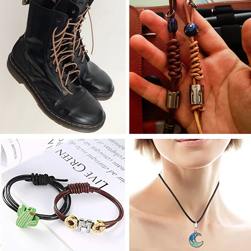 Die runde Form sorgt für ein gleichmäßiges, professionelles Erscheinungsbild and macht das Lederband besonders beliebt for Halsketten, Armbänder, Schlüsselanhänger or or decorative Elemente an Taschen and Kleidung.